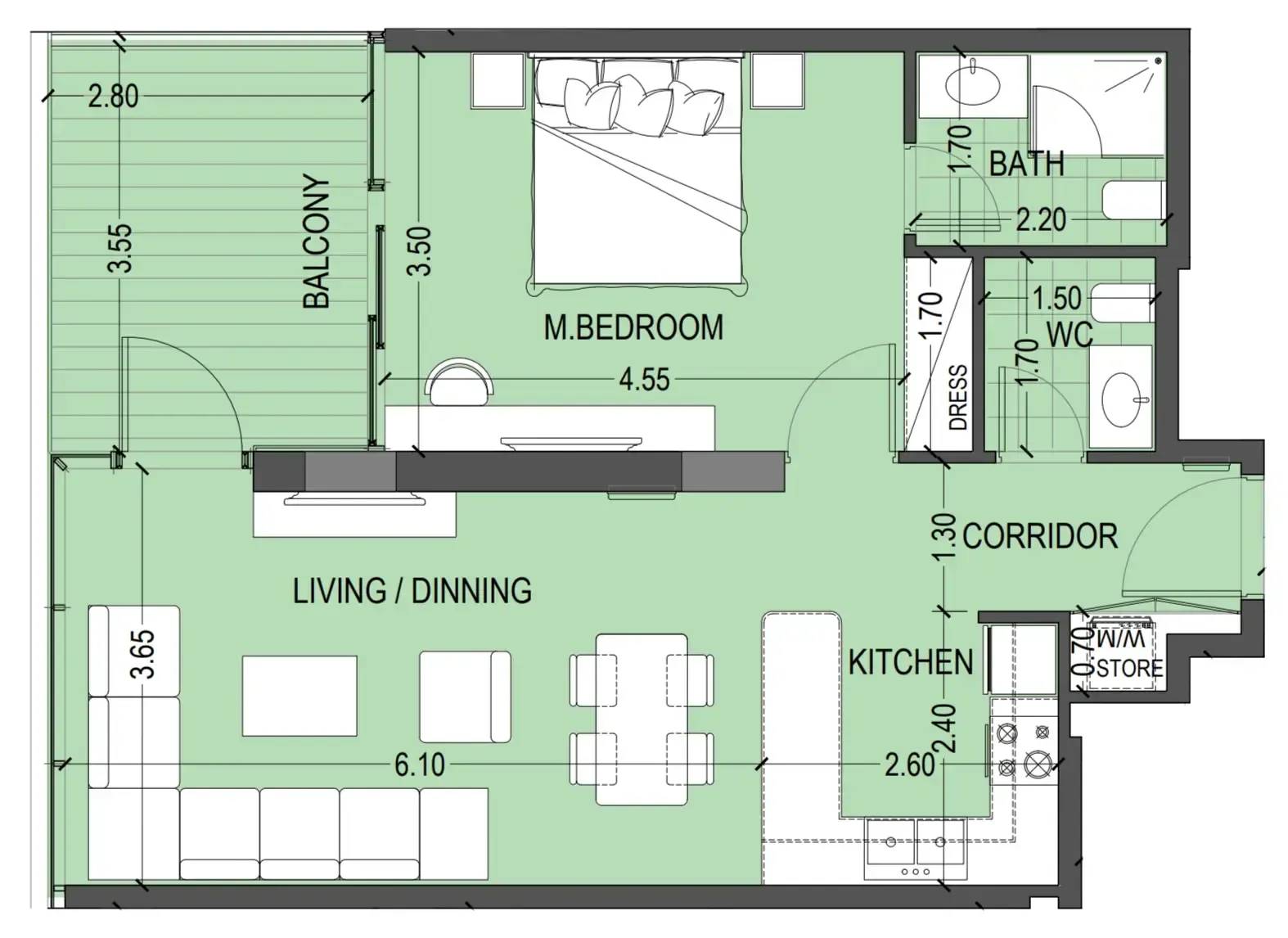 Comprising a single building, Celia Gardens features 45 meticulously designed apartments, including 25 one-bedroom and 20 two-bedroom units. Each residence boasts spacious layouts with high-quality finishes, panoramic windows, and open-plan kitchens equipped with modern appliances. The interiors are crafted to maximize natural light, creating a bright and inviting atmosphere throughout.
