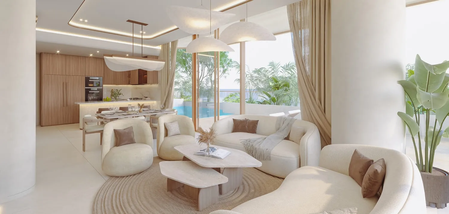The residences include one-, two-, and three-bedroom apartments, as well as four-bedroom townhouses and penthouses. Each home is fully furnished, thoughtfully designed with open layouts, natural textures, and private outdoor spaces such as terraces, balconies, or even jacuzzis. Complementing the residences, Vestoria Bay Club offers a curated lifestyle across multiple levels — from family pools and kids’ play zones to an open-air cinema, rooftop lounge, wellness terrace, and modern fitness hub. Together, they create a vibrant community atmosphere within an elegant coastal retreat.