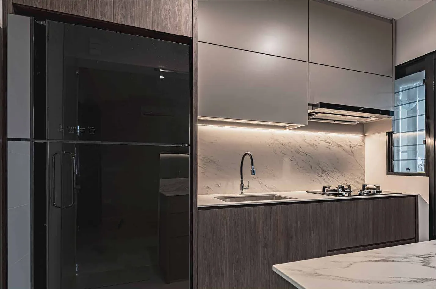 Modular kitchen with modern branded appliances.
