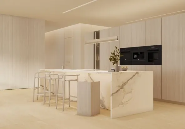 The units are equipped with Miele and high-end fixtures from Kohler and Hansgrohe.