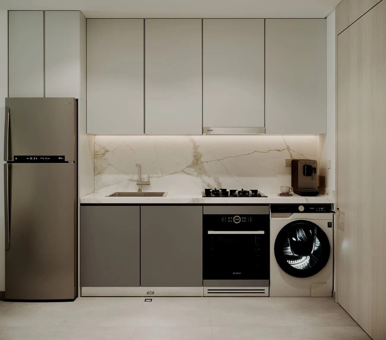 Branded appliances, smart planning, and thoughtful finishes all play their part in the background, letting life take center stage. The finishes are polished and the details, smooth-close drawers, lighting that feels just right, aren’t there by accident.