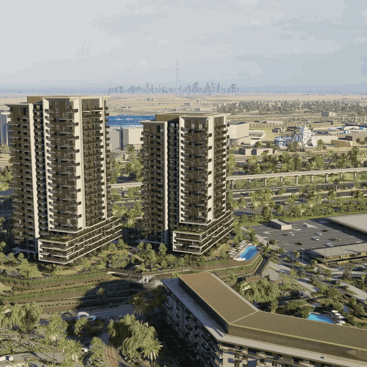 Rise by Athlon in Dubailand is a vibrant residential project designed for those who value both lifestyle and movement. Consisting of eight modern buildings, the architecture blends bold lines, natural timbers, and warm terracotta tones, creating an atmosphere that feels both dynamic and inviting. Each space is designed with flexibility in mind, offering residents a choice between light and dark interior palettes to match their pace of life.