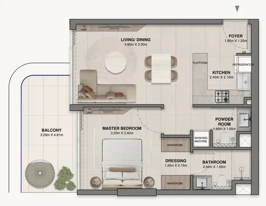 Clean white matte walls create a serene backdrop that lets natural light shine, while custom wardrobes keep your space organised. High-quality tiles add understated distinction throughout, and a smart multi-point locking system ensures your home is always discretely secure.