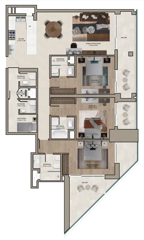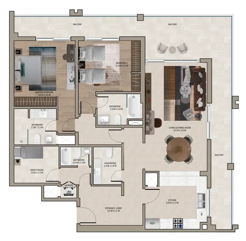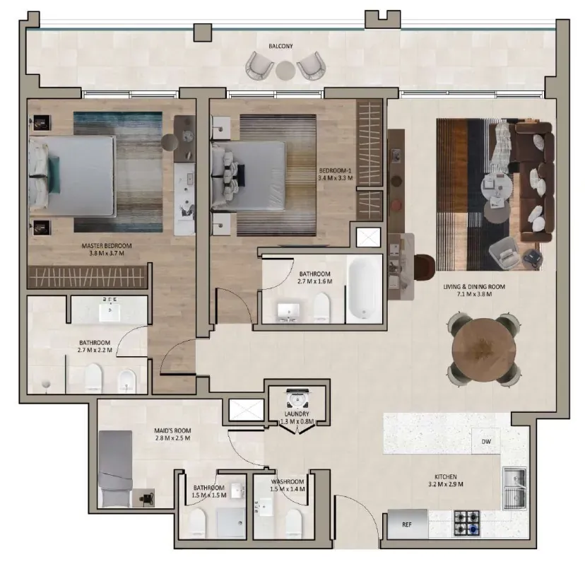Experience the epitome of refined living at Marriott Residences, where elegance meets unparalleled style. Choose from Two, Three-Bedroom, and Duplex Apartments, each crafted for modern sophistication with innovative appliances and contemporary design. Each apartment boasts a modern, open-concept kitchen and living space, a spacious balcony that offers breathtaking views of Dubai, and large windows throughout, allowing ample natural light.