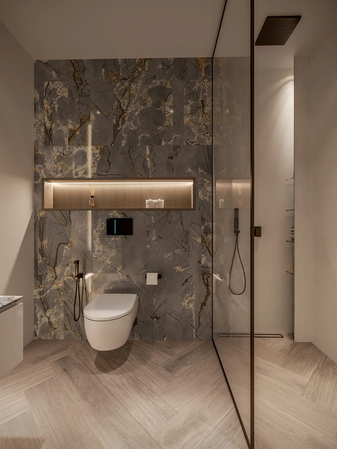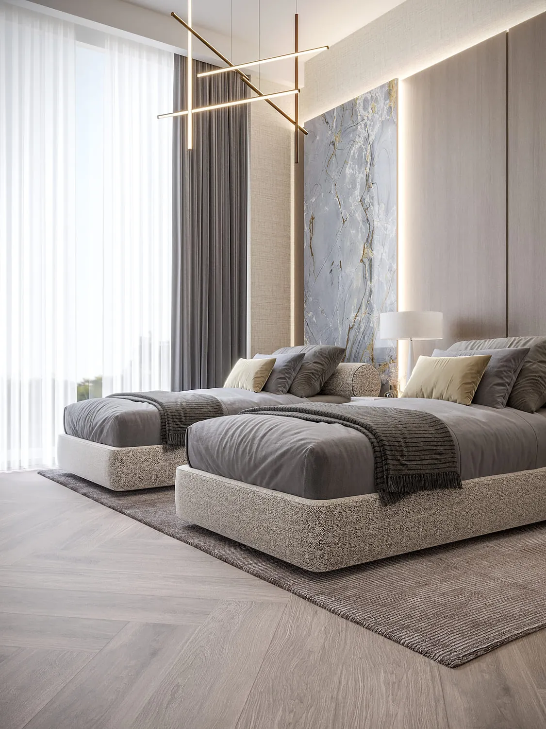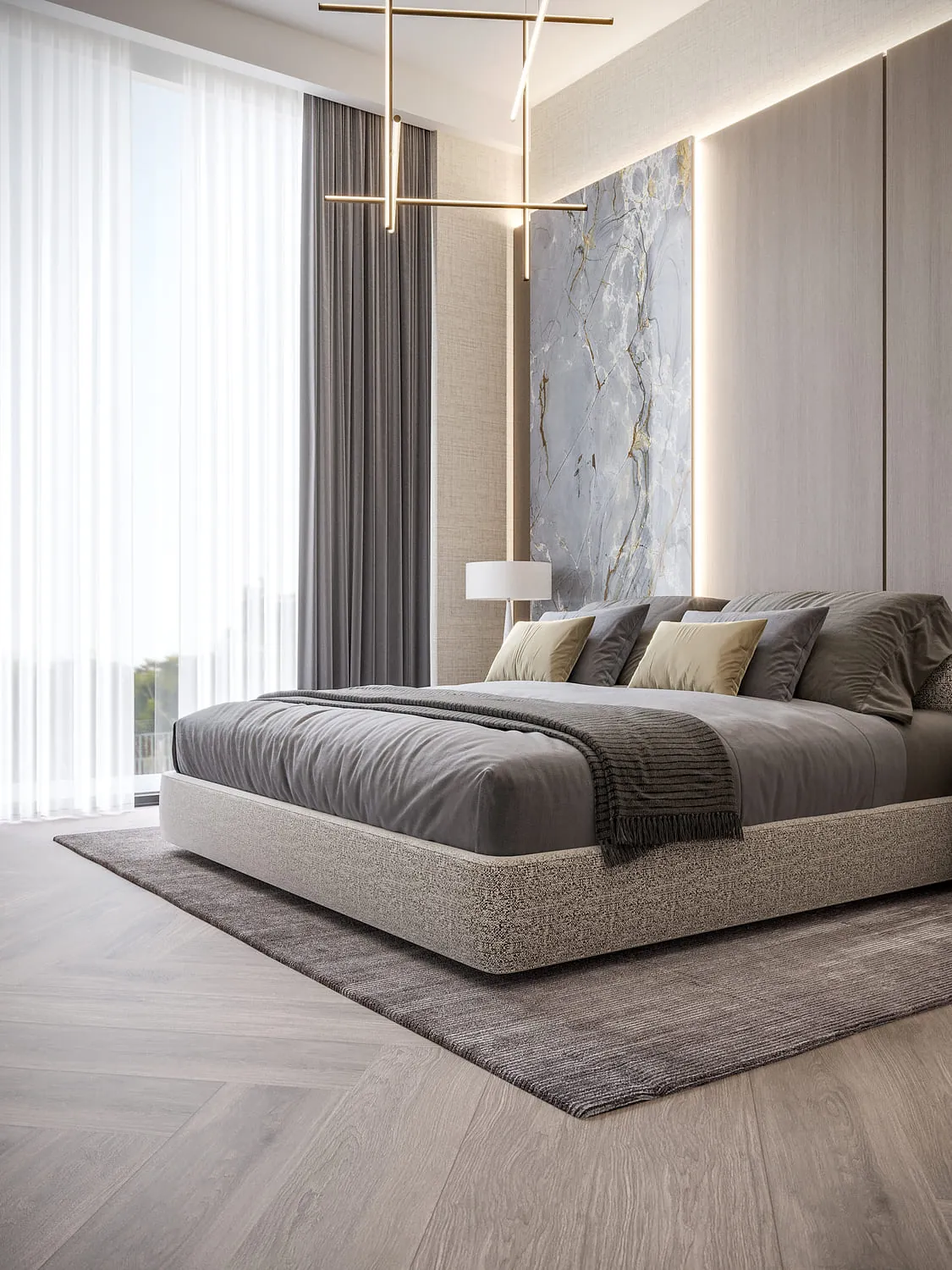 Its meticulously curated space embodies timeless elegance. The interiors of this development evoke new heights of sophistication with a colour palette dominated by sleek shades of grey and calming earthy cool tones, crafting an opulent atmosphere. It features exquisite marbles and stones that elevate each space to an art form, creating an aesthetically contemporary charm.