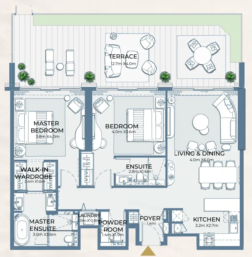 The project boasts an exceptional suite of amenities tailored to enrich daily living and create an environment of pure comfort and convenience. Residents enjoy direct beach access, multiple swimming pools including a sky pool, a state-of-the-art fitness center, wellness facilities, a screening room, and a kids’ club. Additional luxuries include private dining rooms, a games room, water sports facilities, a dog wash station, and elegant gardens, all complemented by access to the Fairmont Resort.