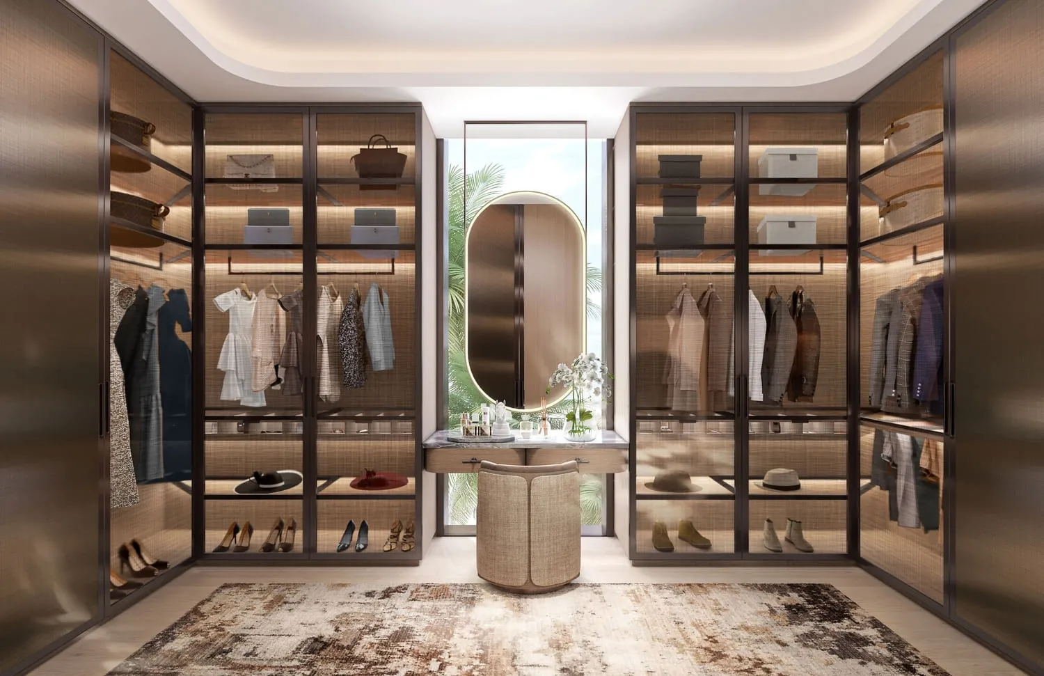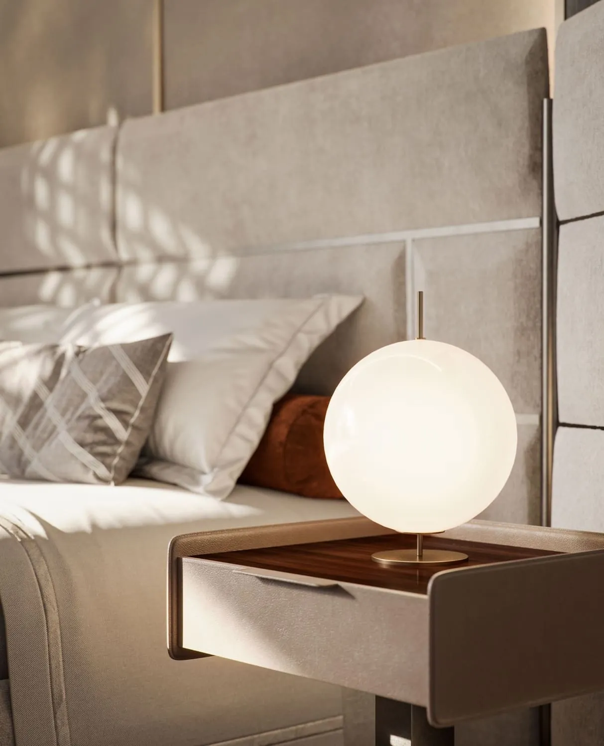 Wooden elements bring warmth to cosy yet palatial rooms where the avant- garde lighting adds a touch of modernity. Throughout this extravagant mansion, space unfurls into indulgent comfort with materials selected for their prestigious quality and enriching textures.