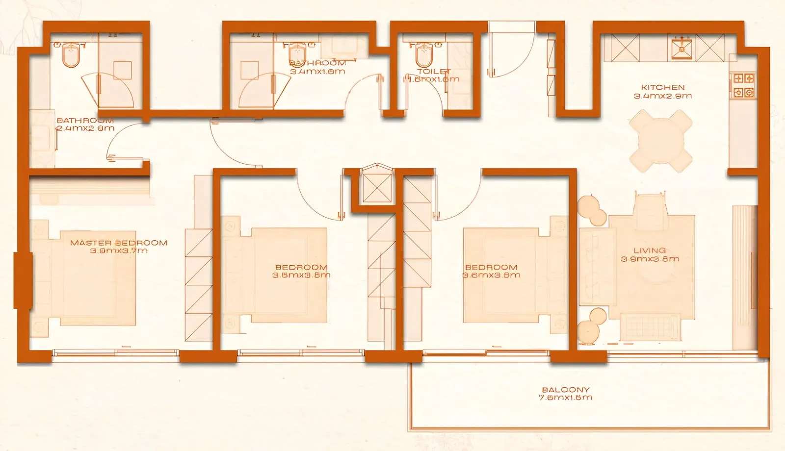 Inside, Modo presents a range of sophisticated residences, from stylish one- to three-bedroom apartments to elegant duplexes. Interiors are designed with open layouts, natural light, and refined finishes that combine modern minimalism with warm, inviting tones. Private terraces, walk-in closets, and luxurious en-suite bathrooms elevate daily living, while clever spatial planning ensures comfort and functionality for both singles and families.