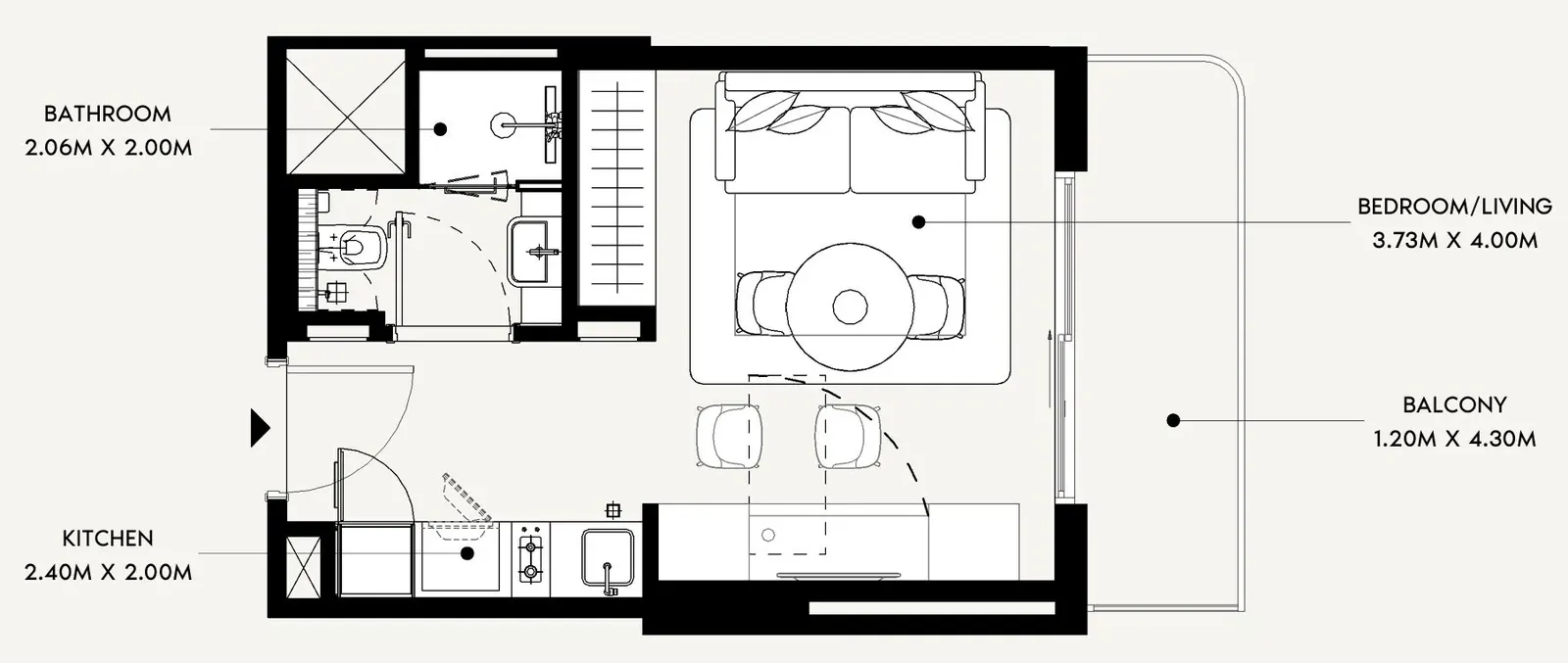 Inside, the residences are designed to meet the needs of discerning homeowners and investors, offering a selection of studios, one- and two-bedroom apartments, as well as luxurious penthouses. Each home is thoughtfully planned to maximise natural light and views, while premium finishes and open layouts enhance comfort and style. Residents enjoy a sense of exclusivity and sophistication in every detail, from the spacious interiors to the private balconies overlooking the water and cityscape.