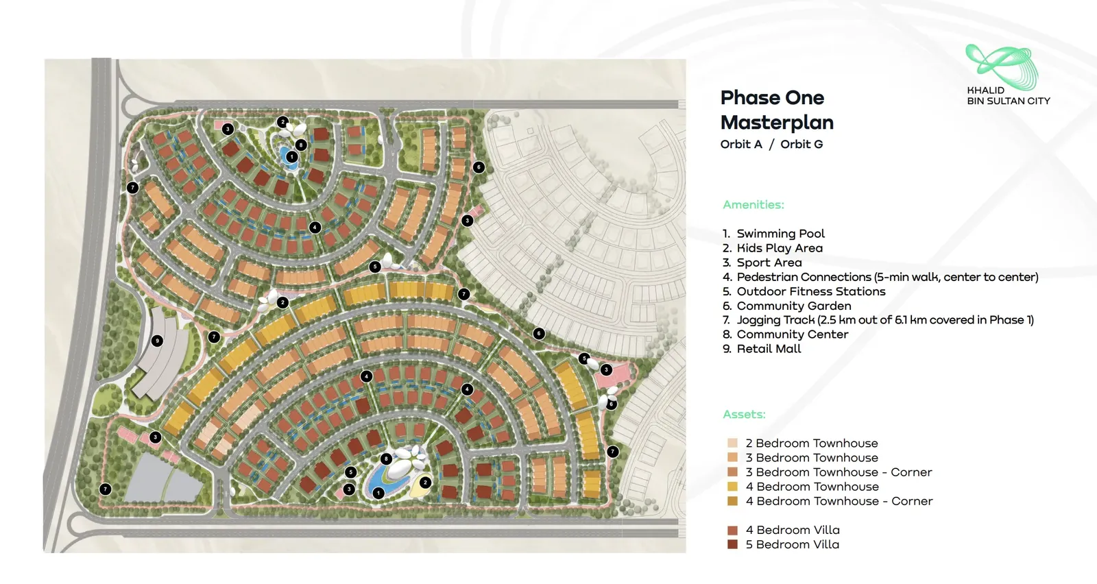 Residents will enjoy a vibrant lifestyle filled with possibilities, from the lively lifestyle avenue to tranquil parks and wellness hubs. The retail mall and cultural center bring convenience, creativity, and connection right to the heart of the community. Khalid Bin Sultan City stands as a masterpiece of design and sustainability, offering a life that is not only luxurious but also meaningful and environmentally responsible.