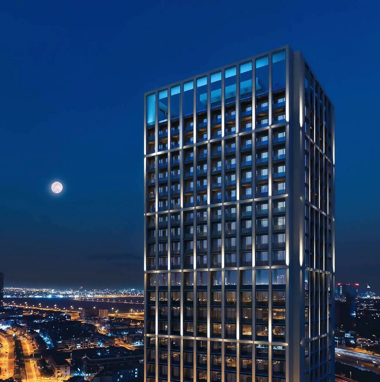Twilight’s architectural presence is a testament to the enduring power of form. Its singular silhouette, rising with sculpted precision, is a modern aesthetic composed of a meticulously articulated grid. This is more than structure; it is a canvas for light, designed to capture, refract and evolve with every passing hour.