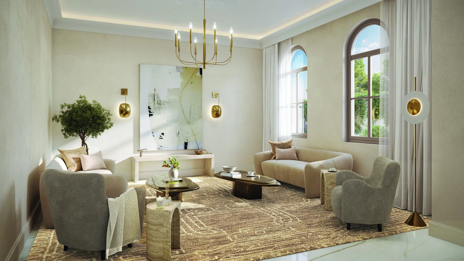 The luxury villas at Almeria offer two interior finish options: the default Premium finish, featuring designer porcelain tiles, bespoke mosaics, and sustainable materials, and the Upgrade finish, which gives you the opportunity to choose the finish yourself, and which adds sophisticated touches like polished marble, hardwood flooring, and brass hardware for a more refined, personalized ambiance.