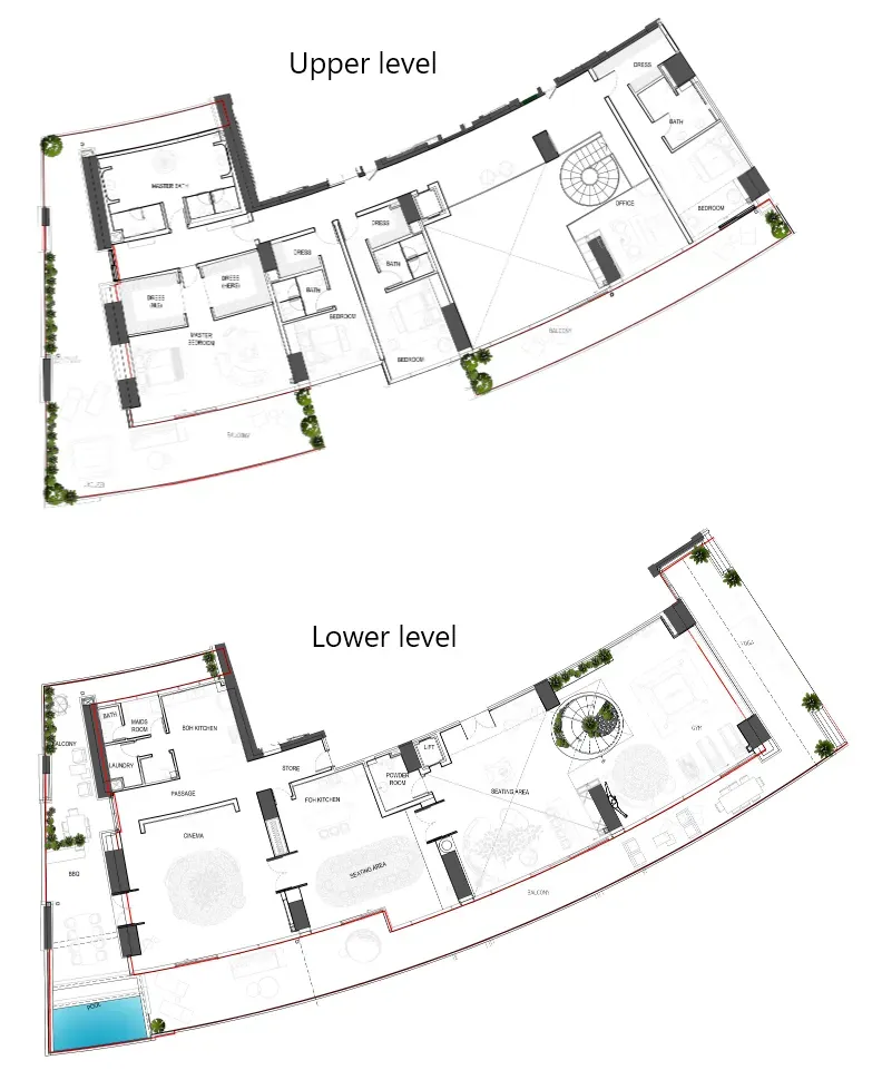 The front-facing apartments feature flexible kitchens fitted with artwork wall separations that transform your living room into a space to entertain your discerning guests. Also on show are lush bathrooms and bedrooms with free standing bathtubs and glass operable partitions.