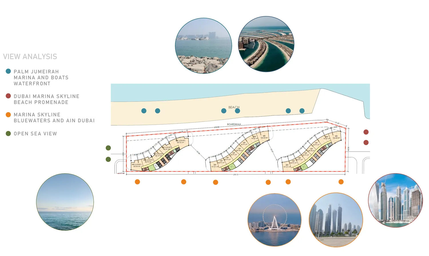 This unique waterfront neighborhood is a stone’s throw away from the city’s most-loved landmarks, beautiful beaches and world- famous attractions such as Ain Dubai and Burj Al Arab.