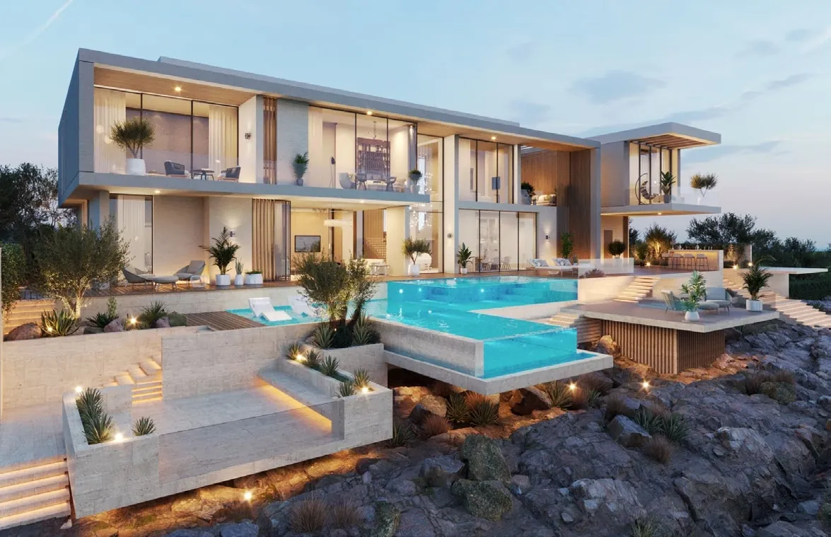This property is beautifully designed by the natural architecture of the mountains and ocean that surround it from everywhere. These villas sit on top of a cliff, 130 meters above the Gulf of Oman and surrounded by a golf course and green spaces.
