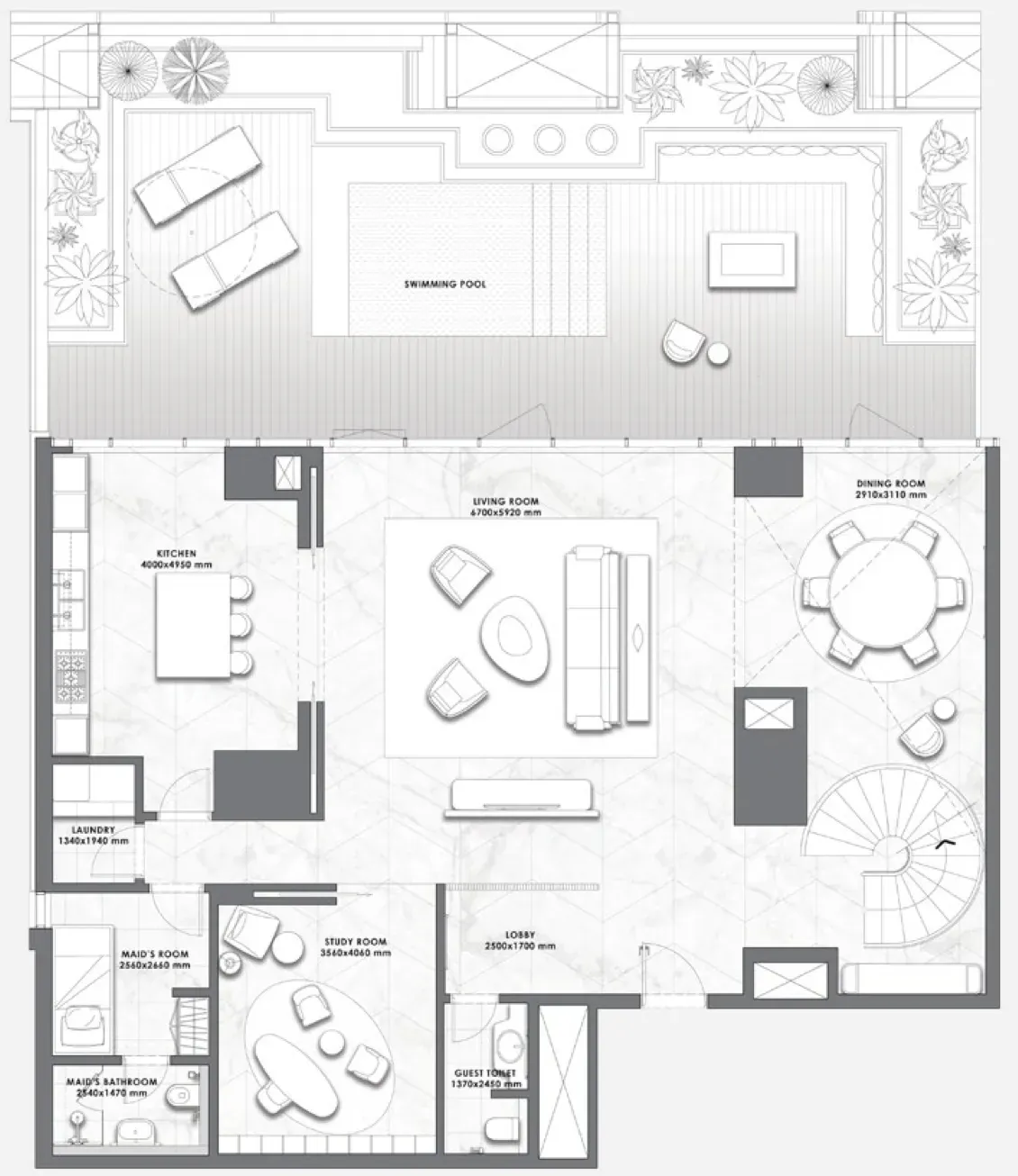 Walking into a Pagani residence is like going through the story of Horacio Pagani designing his own cars – all designed with the highest level of detail and with efficiency and the person living there in mind. The residences have advanced smart home technology to allow you to control your curtains, locking and unlocking your door, play music in your living room, and control the lights across your home. You will also have access to a dedicated concierge service to support you in all your arrangements whether in Dubai or overseas. Not to mention that the building has a gym, steam room, sauna and swimming pool exclusively for Pagani residents which sits on the top floor.