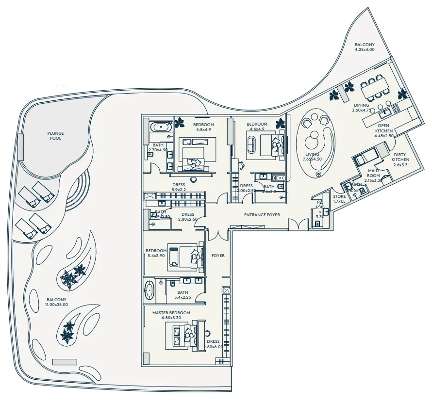 The residential amenities at Rivage provide an unrivaled resort-style experience, catering to every resident's comfort and luxury. These include a family pool, a kids' pool, and an adults-only horizon pool with sunken seating for relaxation. Health and wellness are top priorities, as seen in the dedicated wellness club, spinning studio, yoga area, and treatment rooms, including specialized spaces like a salt room and red light therapy area. For socializing, residents can enjoy the sophisticated lounges and a cigar lounge. Additional amenities, like the event lawn, outdoor cinema, and BBQ area, create an inviting environment for leisure and community engagement. Rivage truly delivers a comprehensive luxury lifestyle within its walls.