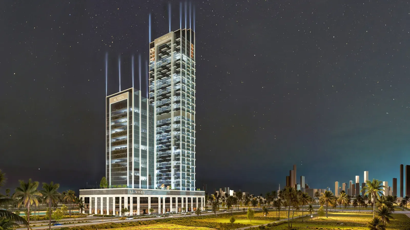 Al Vista by Dubai Investments is envisioned as a landmark of sophistication within the vibrant Meydan Horizon community. The project reflects modern architectural elegance with slender vertical lines, expansive glazing, and podium decks that integrate open views of the lagoon. It combines premium residential living, flexible office spaces, and curated retail offerings, creating a destination that balances comfort, clarity, and elevated urban life.