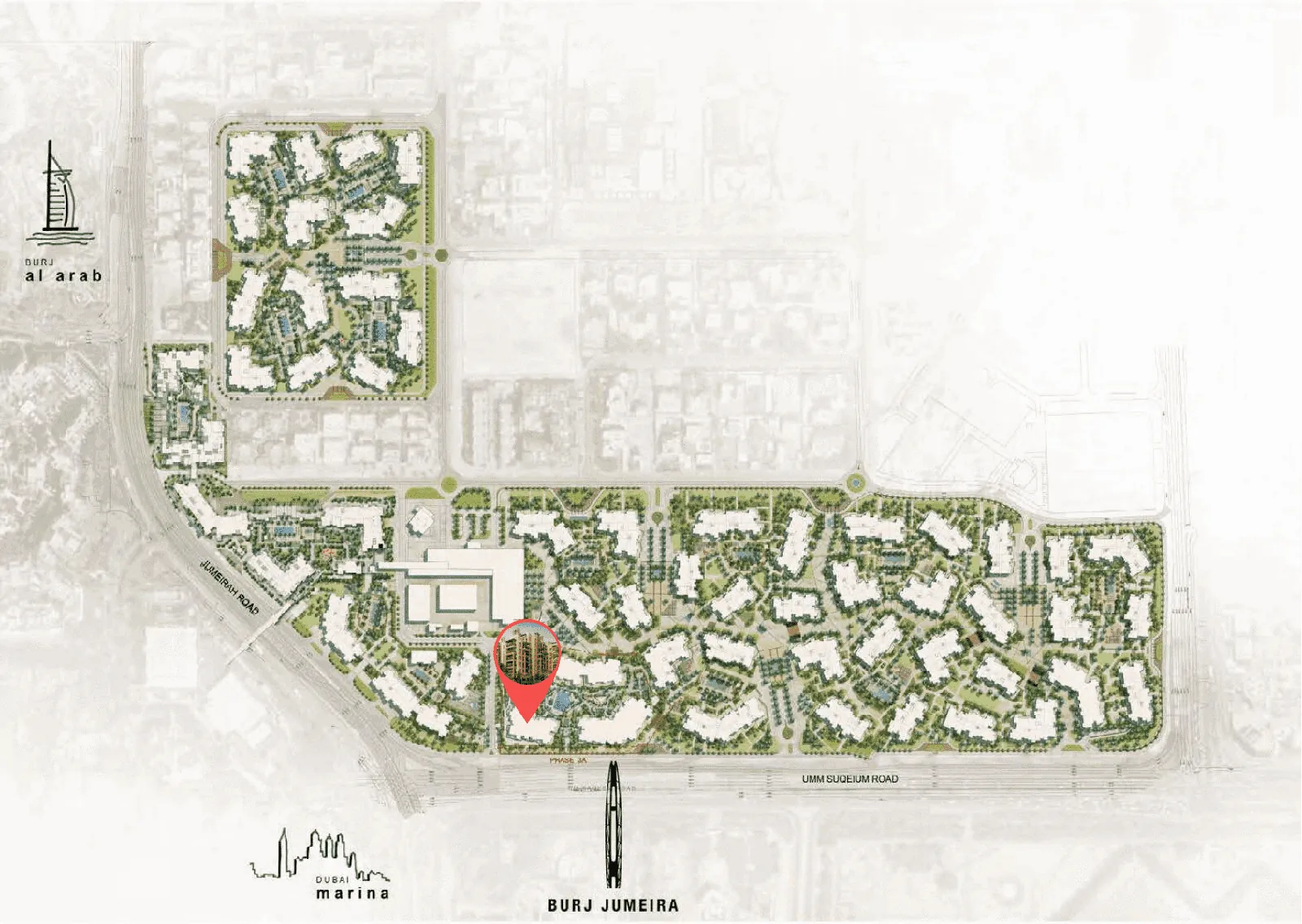 Located 20 minutes from Dubai International Airport, and nestled in Madinat Jumeirah, Madinat Jumeirah Living is also just a few minutes from Dubai Media City, Dubai Internet City, Palm Jumeirah and Dubai Marina. It is adjacent to Burj Al Arab, Wild Wadi Waterpark, Jumeirah Beach Hotel, major shopping malls, public transport links and schools.