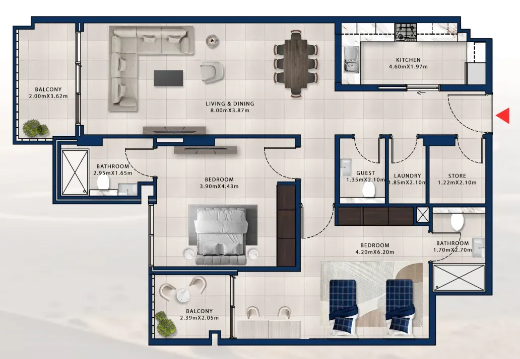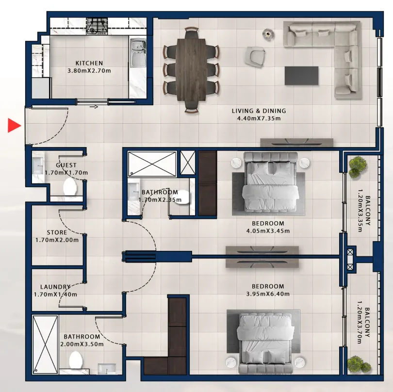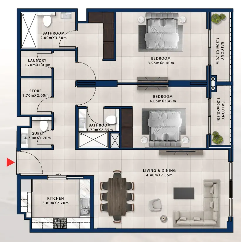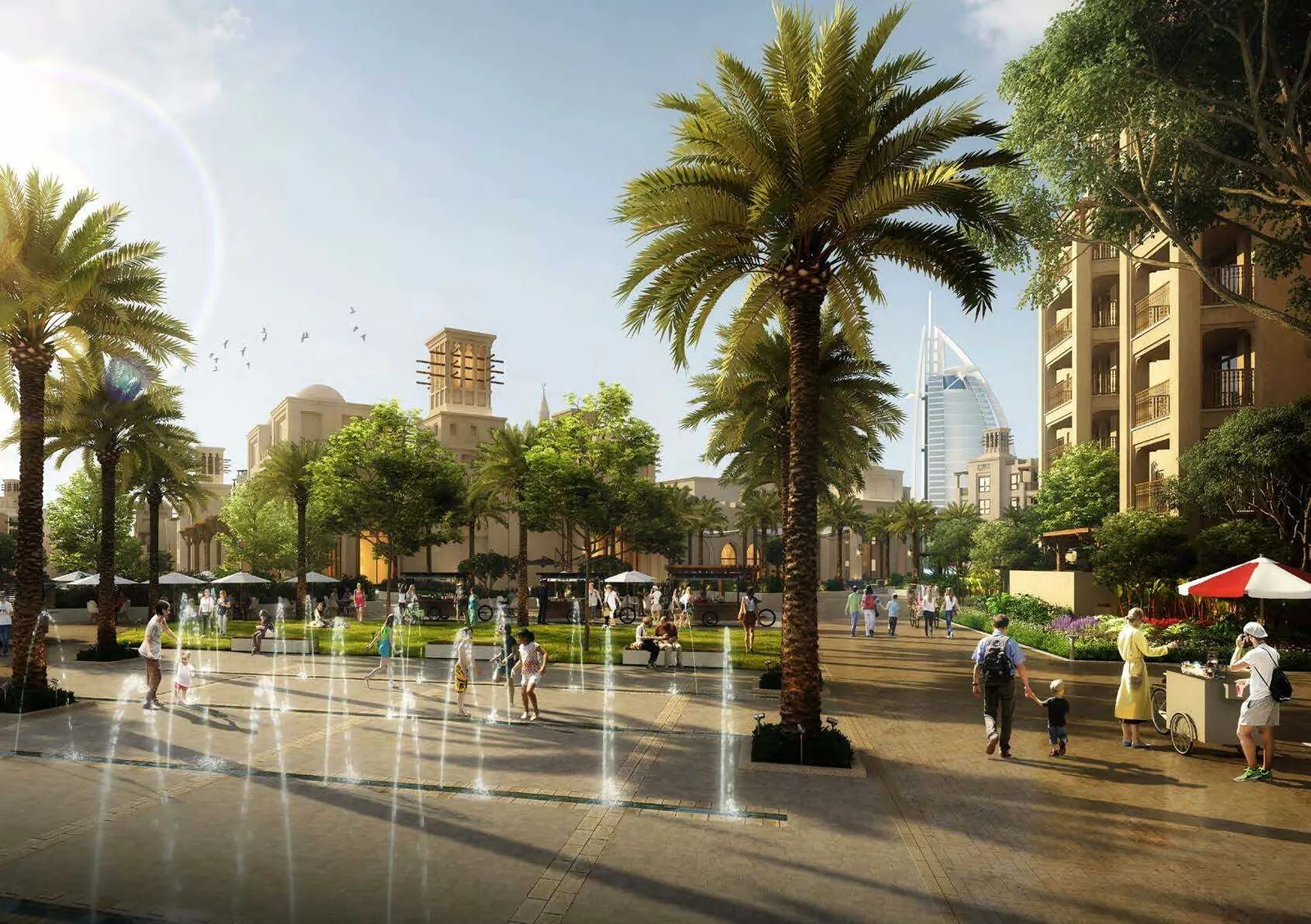A central pedestrian walkway meanders through Madinat Jumeirah Living, providing access to private community entrances. Communal roof terraces with BBQ areas also offer magnificent views of Madinat Jumeirah, Burj Al Arab and the sea.