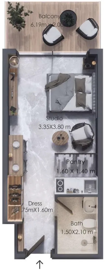 Discover Moonsa Residences 2, a luxurious residential project by Dugasta Properties, offering an unparalleled living experience in a thriving community. This development features elegantly designed studio and 1-bedroom apartments, perfect for those seeking comfort, style, and convenience.