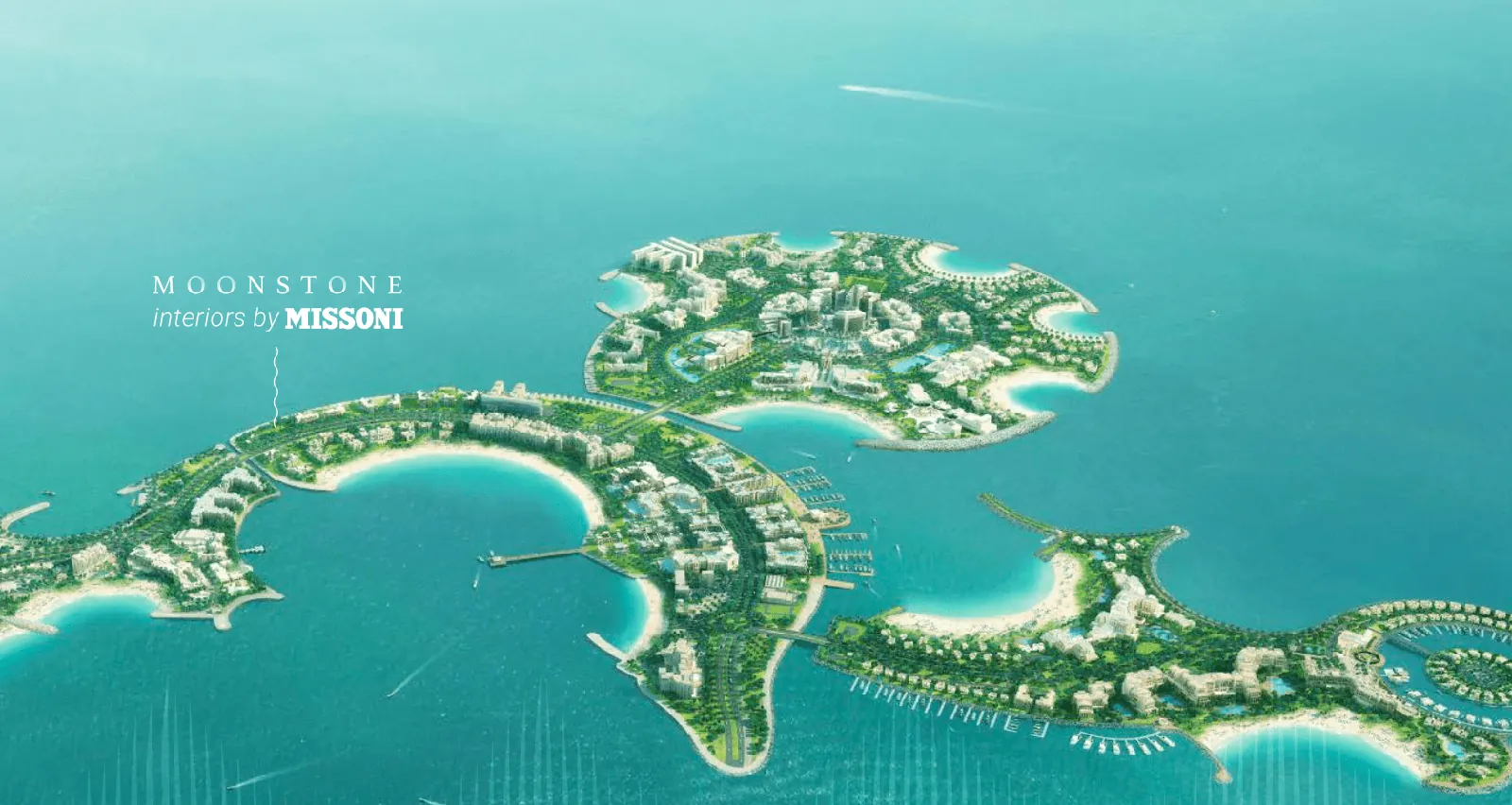 The design concept of the development was inspired by the coral, which is the meaning behind the name ‘Al Marjan’. The building's M-shape was derived from the Moonstone, a beautiful type of coral, and was created to maximize the sea view from each apartment and room.