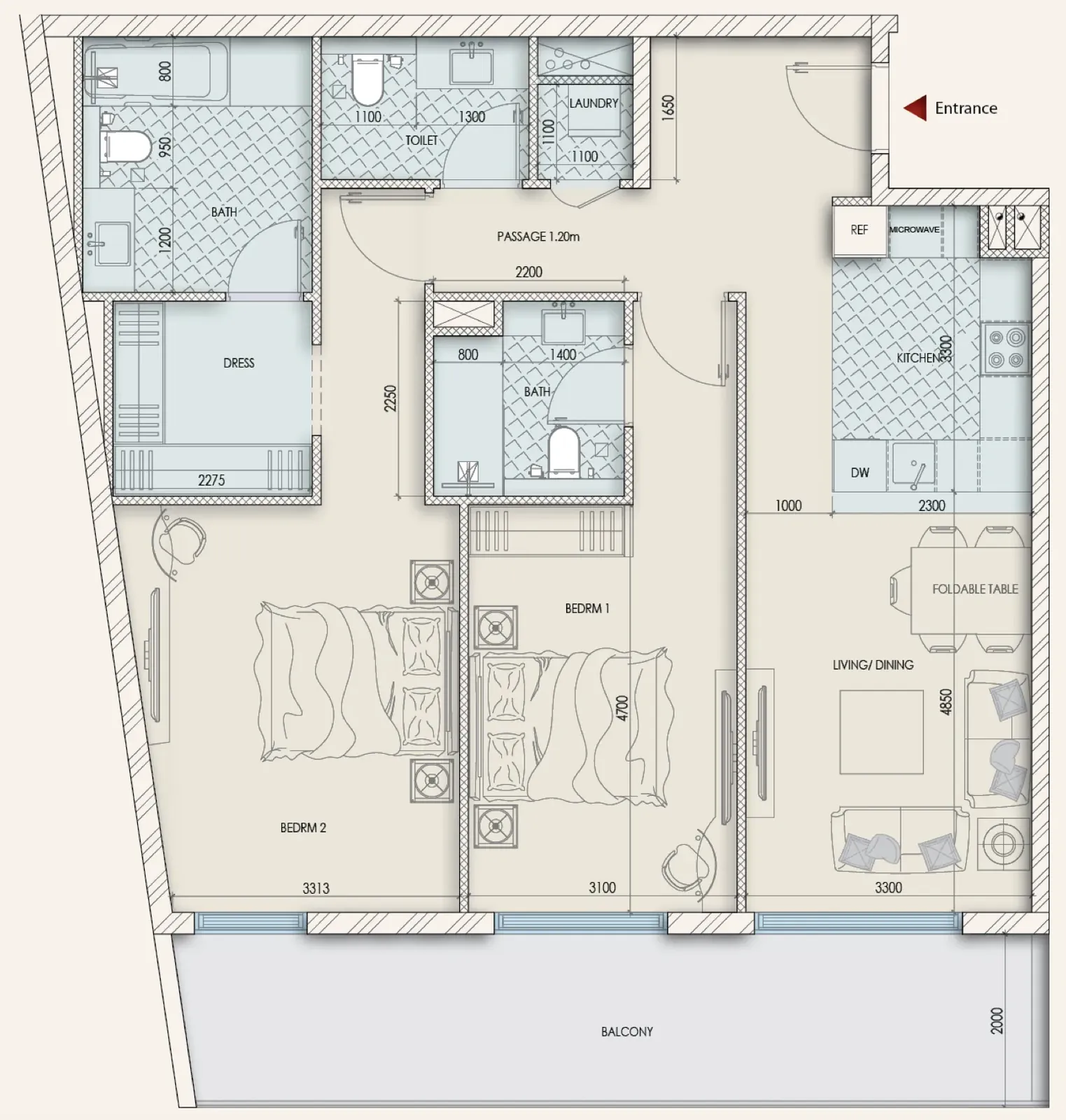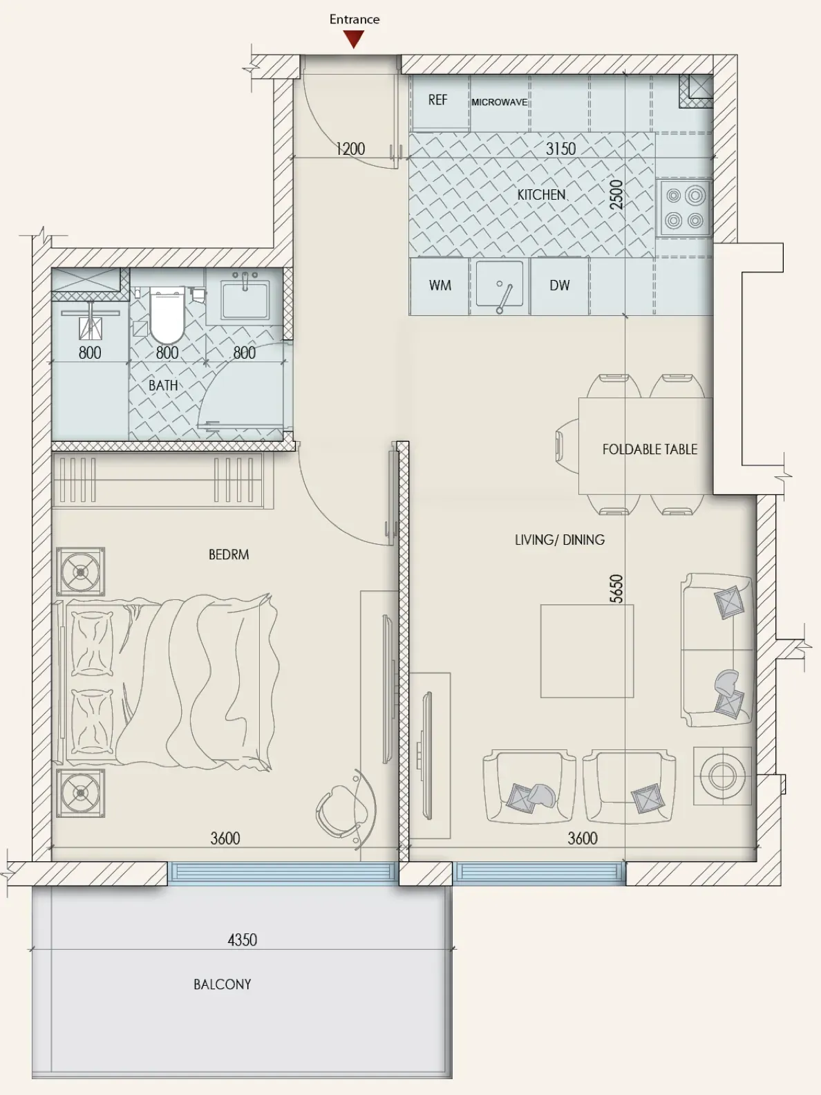 The apartments at Enaya Residences are thoughtfully laid out to maximize space and functionality, ensuring that every square foot is utilized to its fullest potential. Whether you're entertaining guests in the spacious living area or unwinding in the tranquil confines of your bedroom, you'll find that every corner of your Enaya Residence is designed with your comfort in mind.