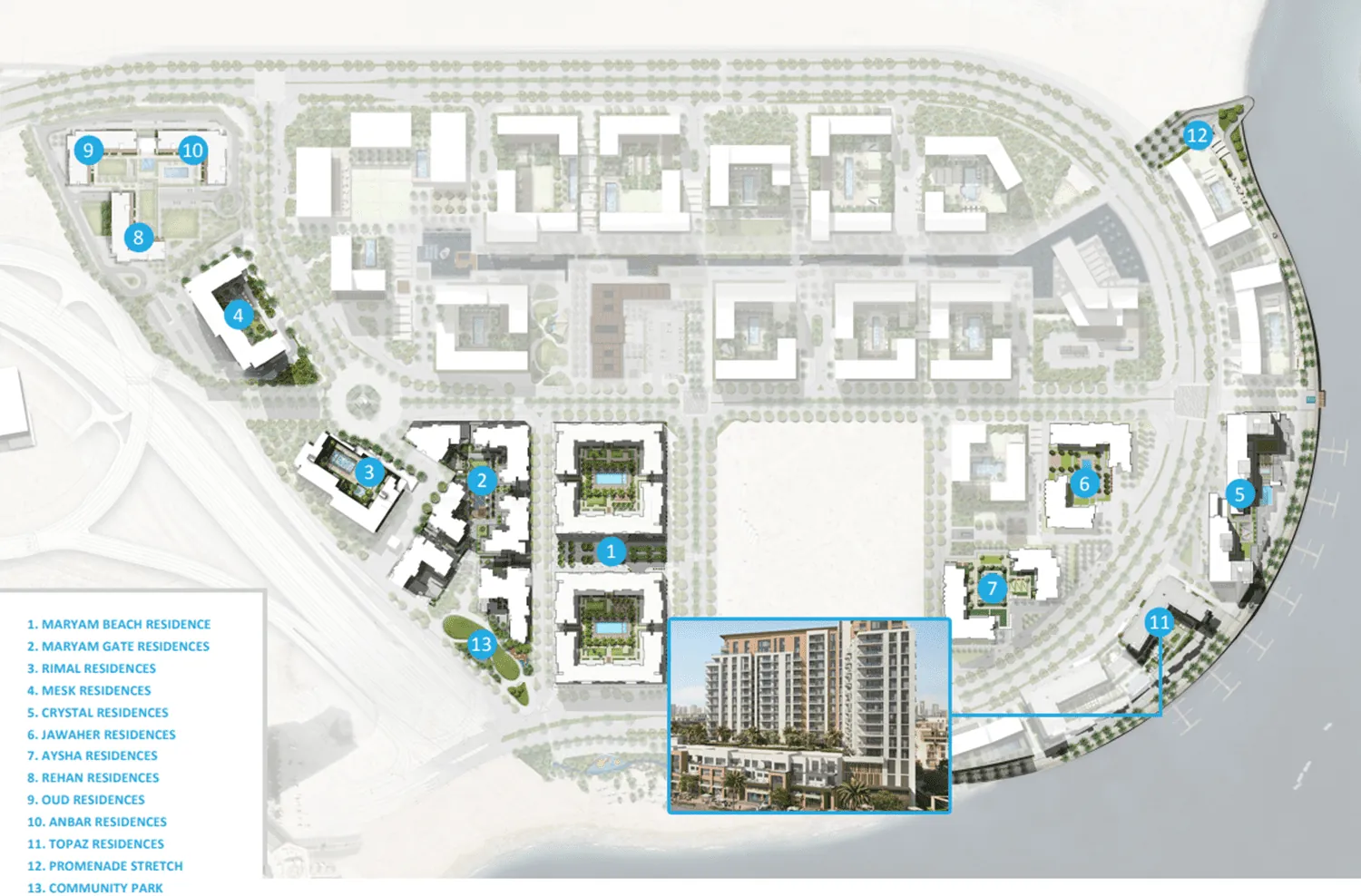 Topaz Residences is a 13-storey building that houses exquisite 123 choices of elegant and contemporary living spaces, which includes five opulent townhouses and a wide range of apartments with one to four bedrooms.The residential units in this development are designed to exemplify the principles of simplicity and sophistication. It features a broad array of benefits, including a private balcony that offers breathtaking waterfront views, a designated parking, a swimming pool and a fully equipped gym, setting forth an exquisite lifestyle.
