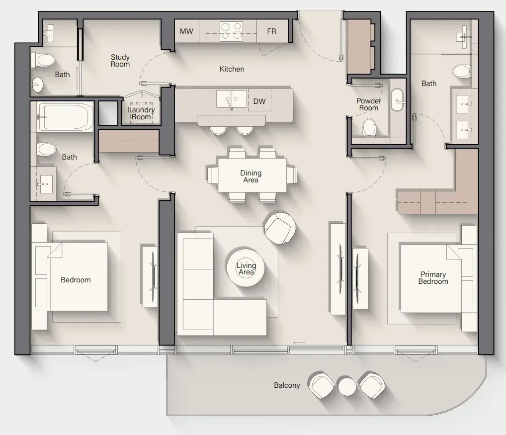 The amenities at Costa Mare set a new benchmark for luxury and leisure, offering residents an unmatched living experience. The development boasts a private beach, multiple infinity pools, and beautifully landscaped communal spaces that encourage relaxation and social connection. Sports enthusiasts can enjoy the padel court, jogging tracks, and fitness studios, while families have access to dedicated kids' play areas and clubhouses. Additional features such as a cinema room, wellness studio, and immersive dining spaces elevate the lifestyle.
