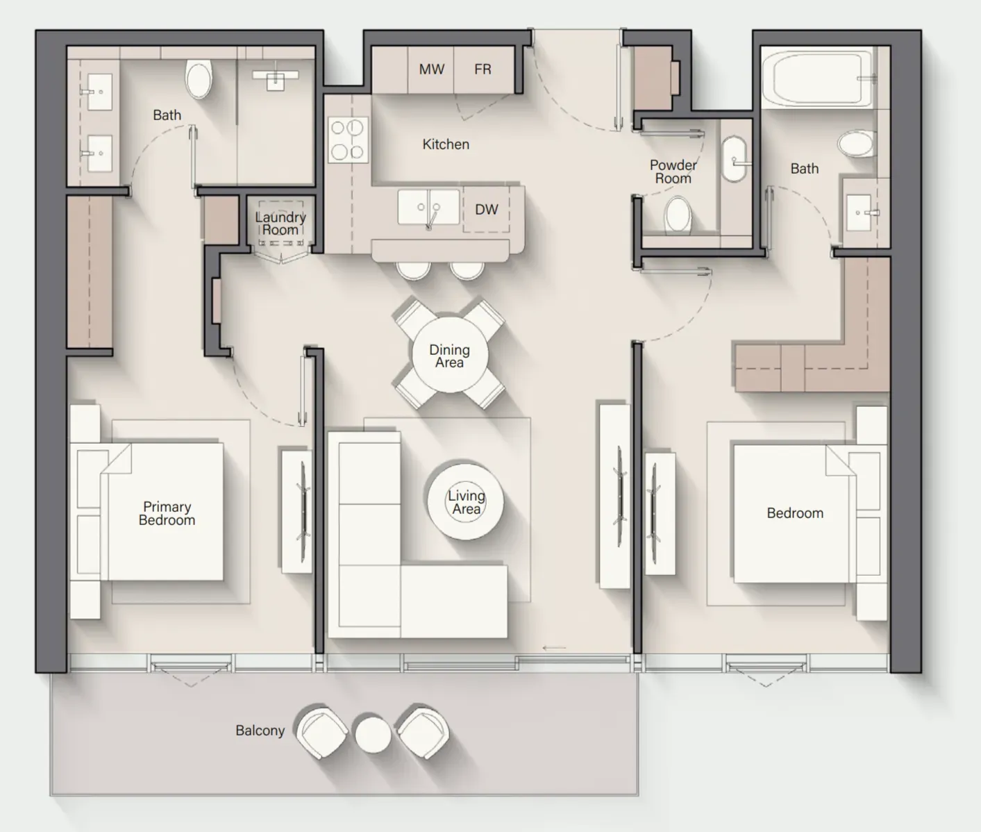 Costa Mare is an extraordinary residential development on Al Marjan Island, Ras Al Khaimah, featuring four architecturally stunning towers that blend seamlessly with their natural surroundings. Designed to capture the beauty of the mountains and the sea, Costa Mare presents a refined aesthetic with earthy tones, fluid shapes, and breathtaking views. Every residence is crafted with elegance, ensuring an atmosphere of tranquility and exclusivity.