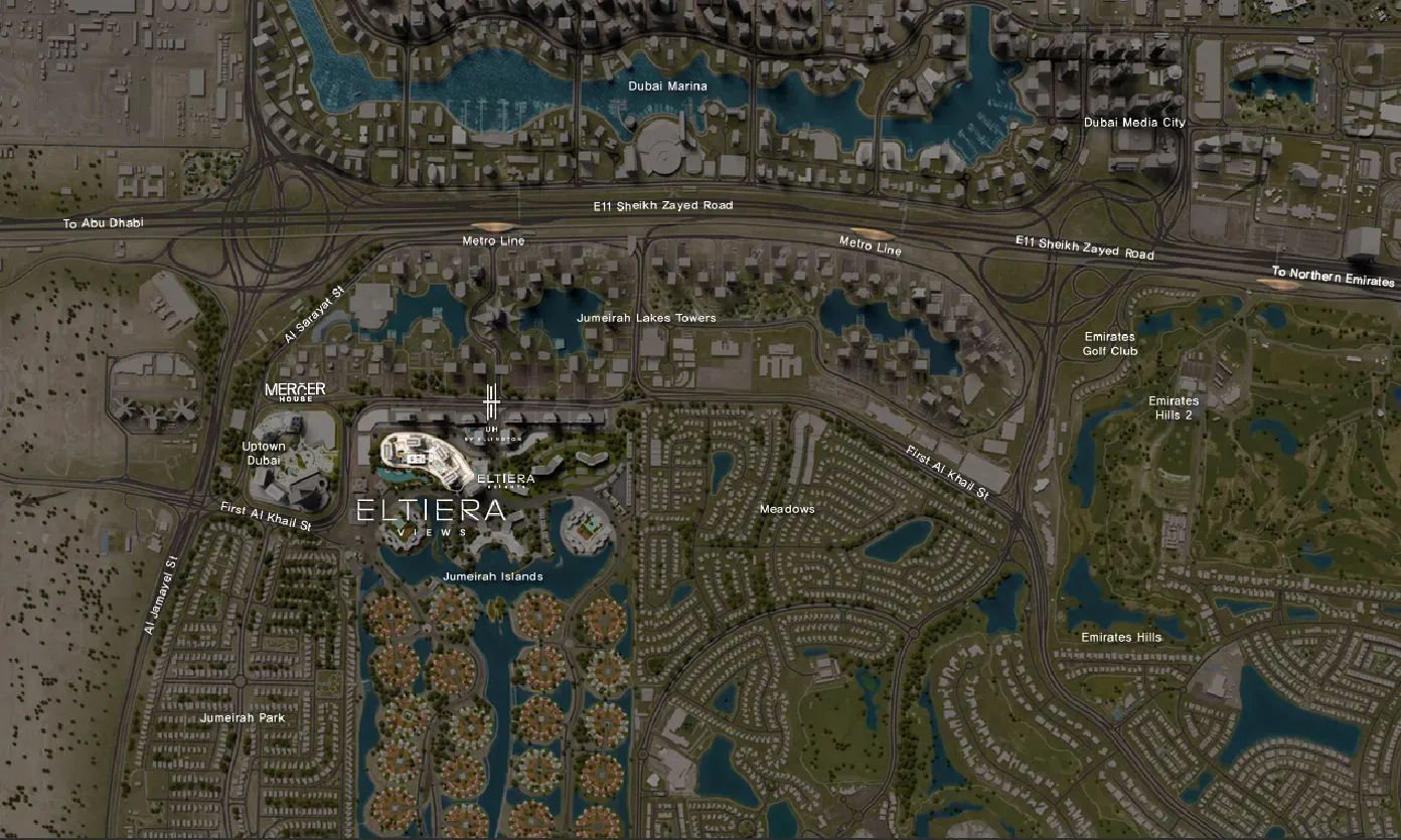 Eltiera Views introduces the next evolution of refined residential architecture within the tranquil landscape of Jumeirah Islands. With Towers 1 and 2 now launching, the project reveals a fluid, contemporary aesthetic that mirrors its natural surroundings — sculpted greens, serene lakes, and distant waterfronts. Soft silhouettes, layered façades, and expansive glass surfaces create a harmonious architectural rhythm, allowing the buildings to blend seamlessly into their environment. Designed as an expression of calm sophistication, Eltiera Views elevates everyday living into an art form.
