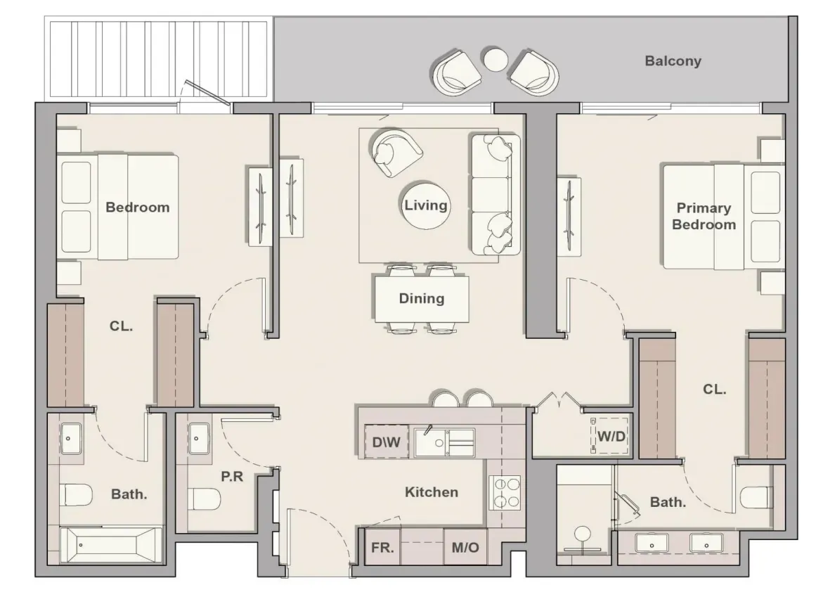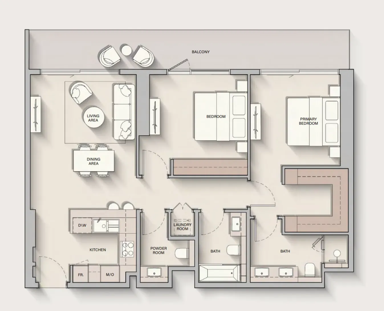 The kitchens at The Hillgate combine timeless design with modern convenience, featuring sleek finishes, ample storage, and a functional island that connects seamlessly with the living area. Each kitchen is thoughtfully crafted to be both beautiful and versatile, making it the heart of the home where cooking, entertaining, and daily routines come together effortlessly.
