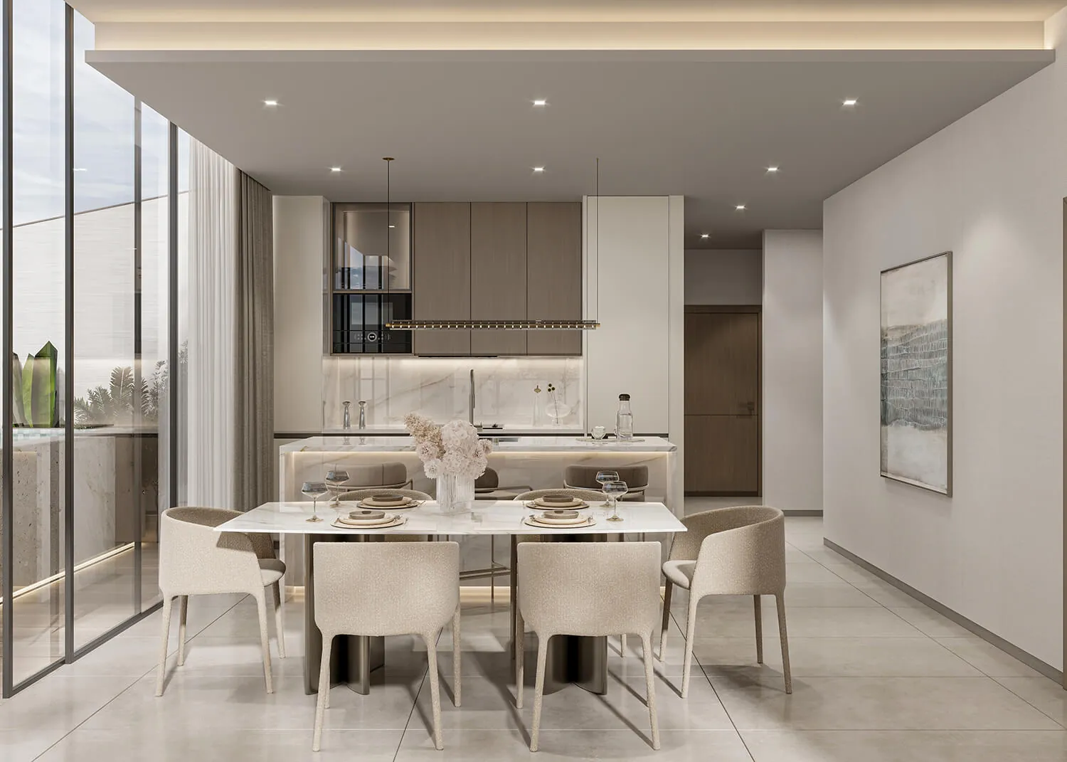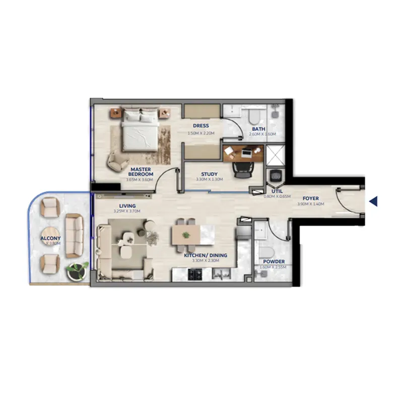 Each of the residences is a carefully crafted space where natural light, elegant textures, and intuitive layouts come together in perfect harmony. The interiors reflect a lifestyle rooted in understated grandeur — with open kitchens, soft-toned bedrooms, study areas, and private terraces that frame the skyline. Signature features like home automation and custom lighting further elevate the daily living experience, while every corner is designed to feel graceful and grounded.