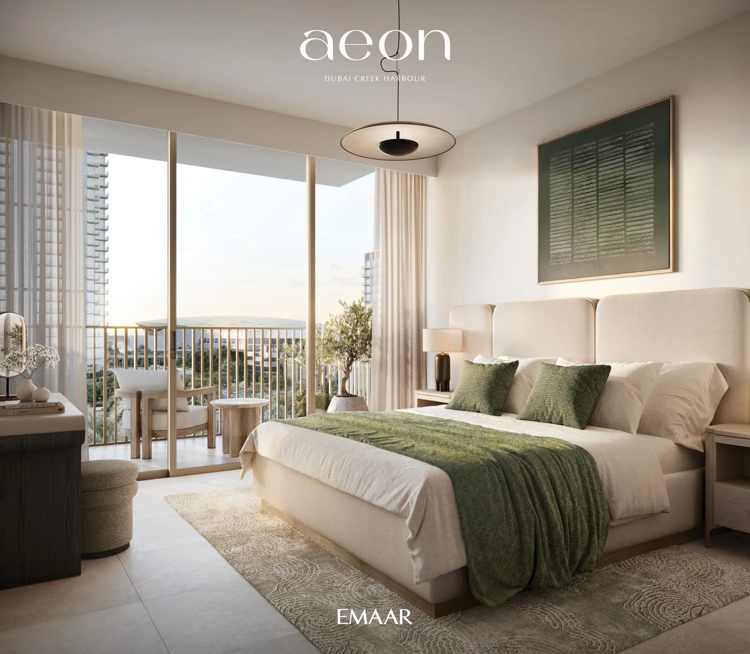 Residents of Aeon are treated to a visual feast from dawn to dusk. Extending views of the captivating Dubai Creek Canal, verdant parks, and Dubai’s skyscrapers, an intricate weave of thriving energy and natural beauty unfolds. Aeon’s architecture speaks the language of modern city legends. Leveraging raw, authentic materials sourced locally, this edifice reinterprets Dubai’s architectural narrative, blending the city’s rooted legacy with tomorrow’s cityscapes.