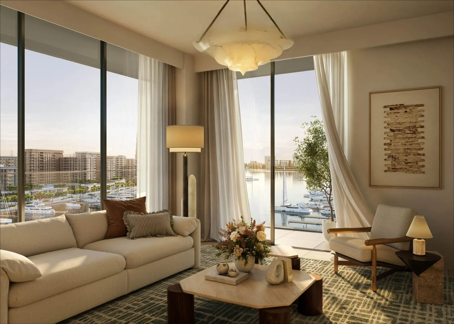 Inside each residence, open layouts, premium finishes, and floor-to-ceiling windows create homes that are both elegant and functional. Crafted with bespoke details and refined tones, the interiors radiate warmth and understated luxury. Whether in an apartment with marina views or a home with private terraces, Aurea redefines waterfront living as a harmonious sanctuary where modern comfort meets coastal sophistication.