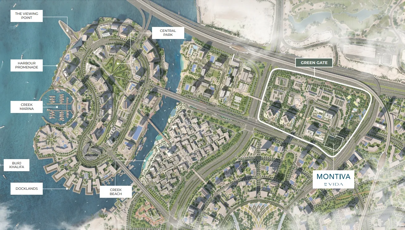 Situated in the peaceful Green Gate District of Dubai Creek Harbour, Montiva is perfectly connected to city life with easy access to Downtown Dubai, the airport, and future metro lines. Whether it's a spontaneous dinner in the city or a quiet morning by the infinity pool, Montiva blends natural tranquillity with urban convenience. Developed by Emaar, one of the world’s leading real estate brands, this project is more than a home—it’s a gateway to inspired living.