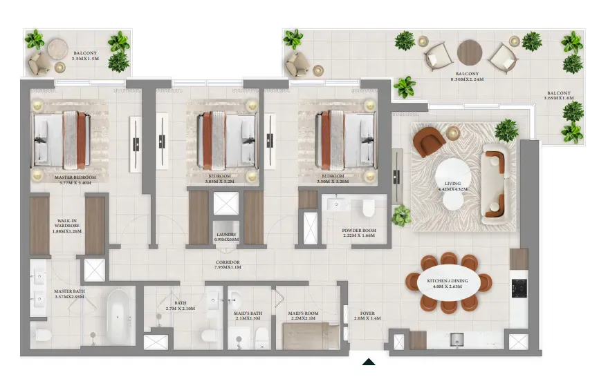 Vida Residences Hillside is a stunning project offering a selection of exquisitely designed 1, 2, and 3-bedroom apartments, along with spacious 3-bedroom townhouses. Each home features a private balcony that opens up to captivating views of Dubai Hillside Park, blending modern urban living with lush natural beauty. The architecture and interior design reflect a serene minimalism, using earthy tones and clean lines to create a calming atmosphere.