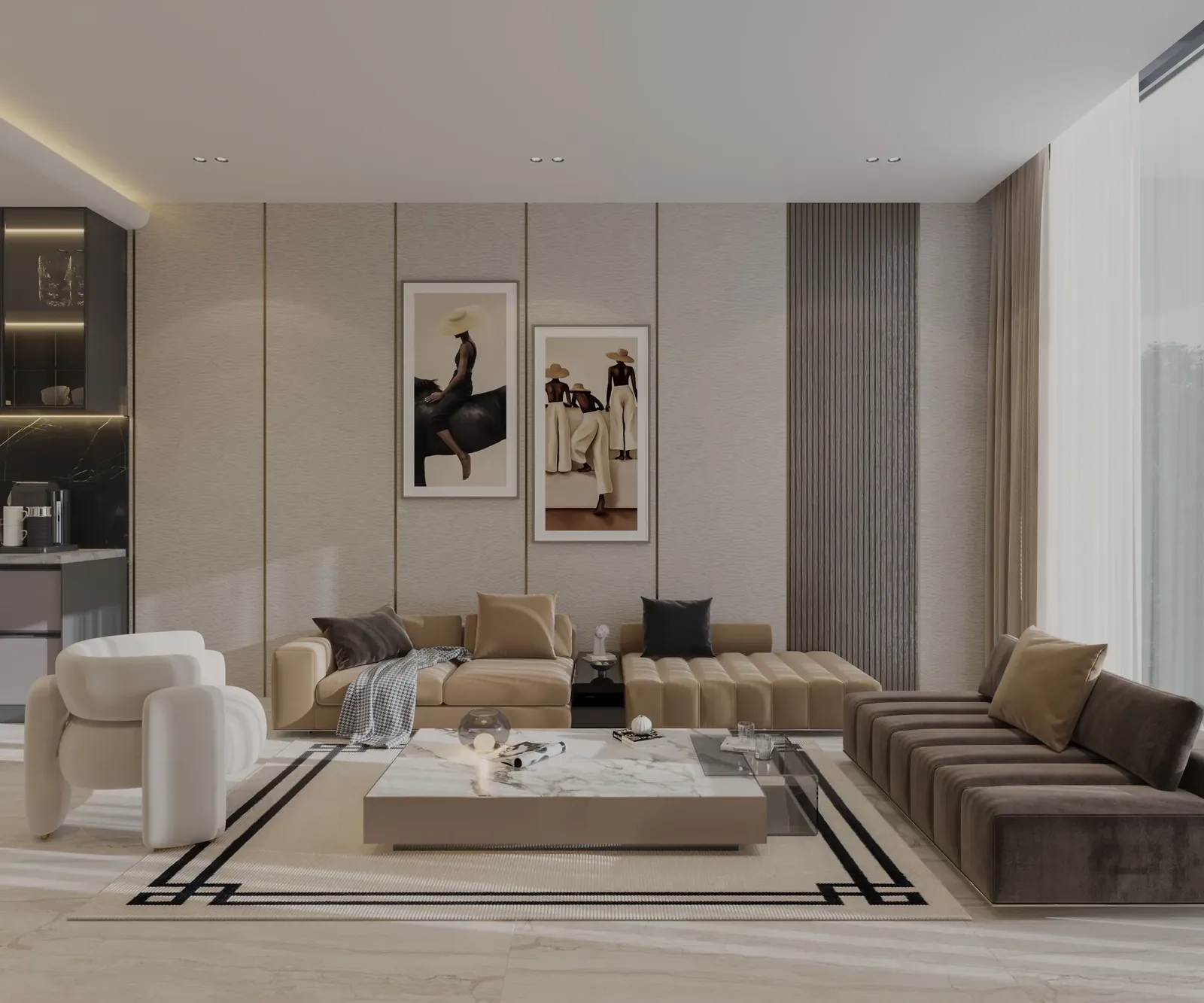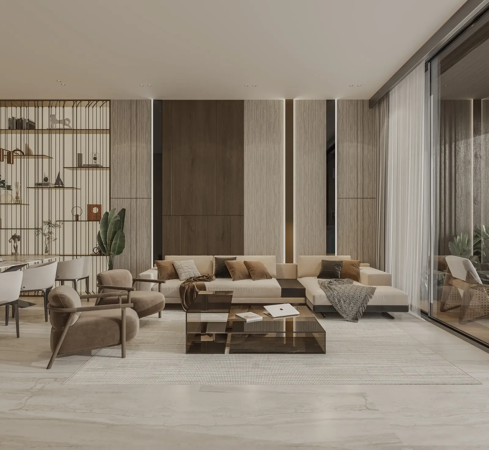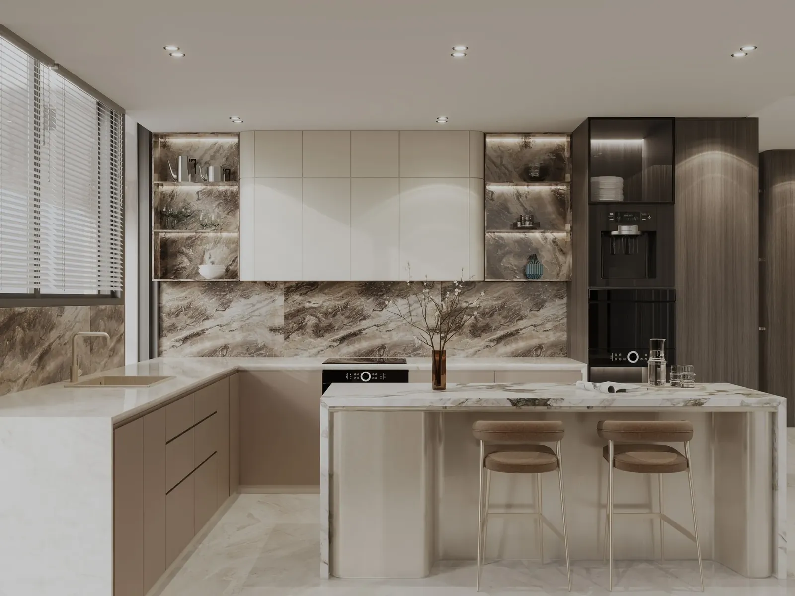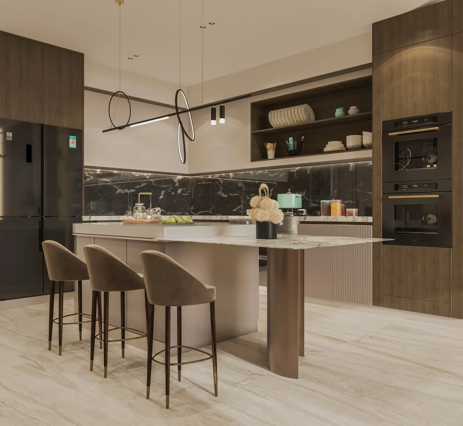 Empire Gardens features semi-furnished interiors with fully fitted kitchens, incorporating high-quality modern materials and a warm, contemporary palette. The homes include sleek built-in elements and carefully selected finishes designed to enhance durability and comfort. The brochure does not reference specific brands, but the project emphasizes refined craftsmanship and a cohesive design language that elevates the overall residential experience.