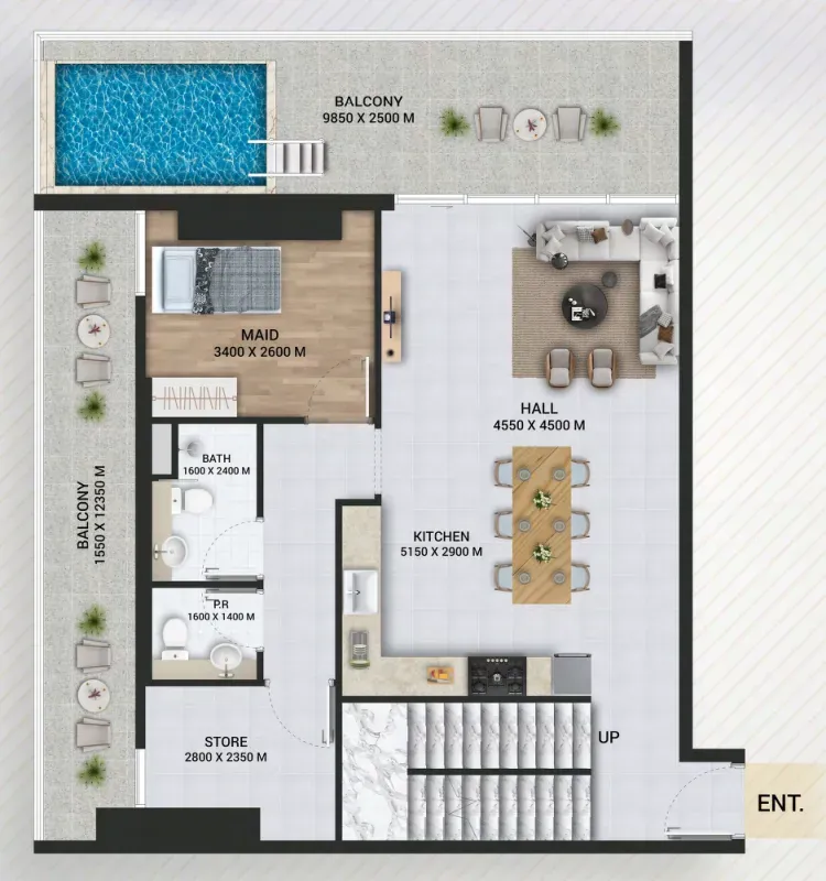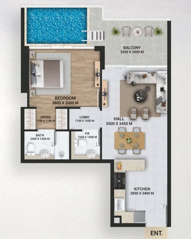 Empire Lake Views project in the vibrant Liwan district of Dubai offers an impressive selection of luxurious apartments to cater to diverse lifestyle needs. Future residents can choose from beautifully designed Studio units, One-bedroom apartments with exclusive pool access, spacious Two-bedroom apartments with a pool, and Three-bedroom duplexes, also with private pool access. Each apartment is crafted to provide the utmost comfort and elegance, combining modern design with functional layouts that maximize both space and style. This range of options ensures that everyone, from young individuals to families, can find a space that perfectly suits their needs.