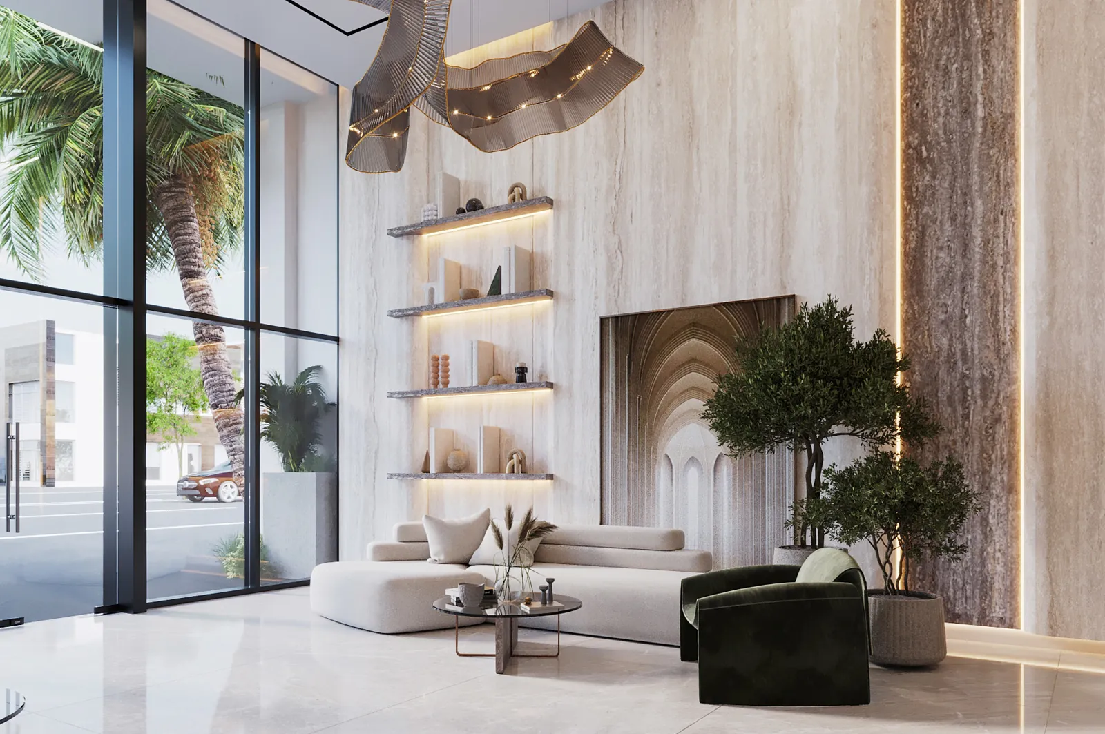 Travertine Boad in Reception, Backsplash - Bathroom, Main Door Finish, Wardrobes and Washroom Cabinets, Room Door Finish, General Flooring and wall porcilene, Wardrobes Glass Finish