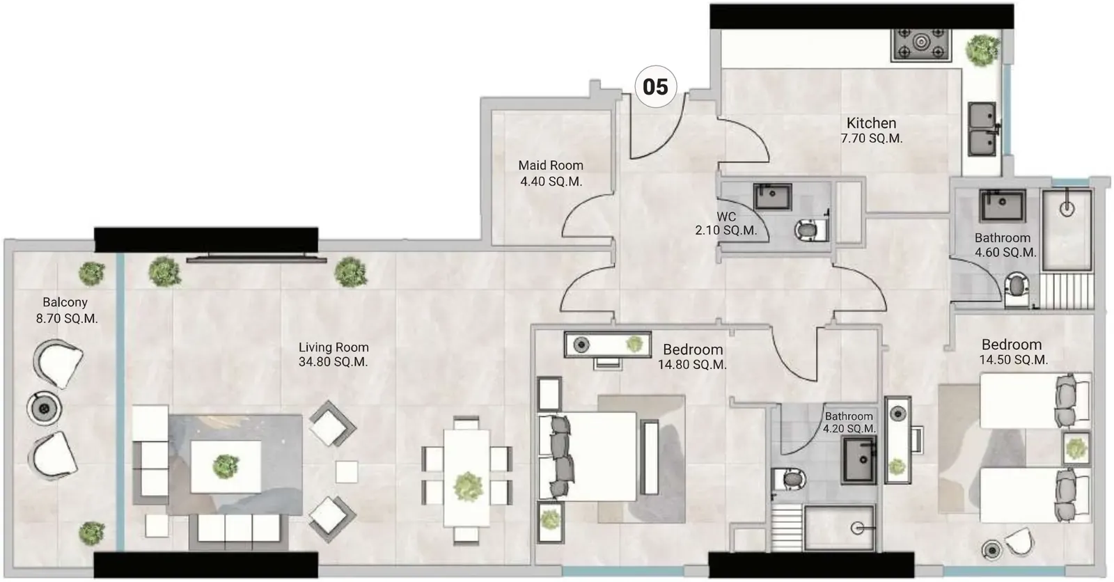 Modern luxury finishing with high-quality materials.