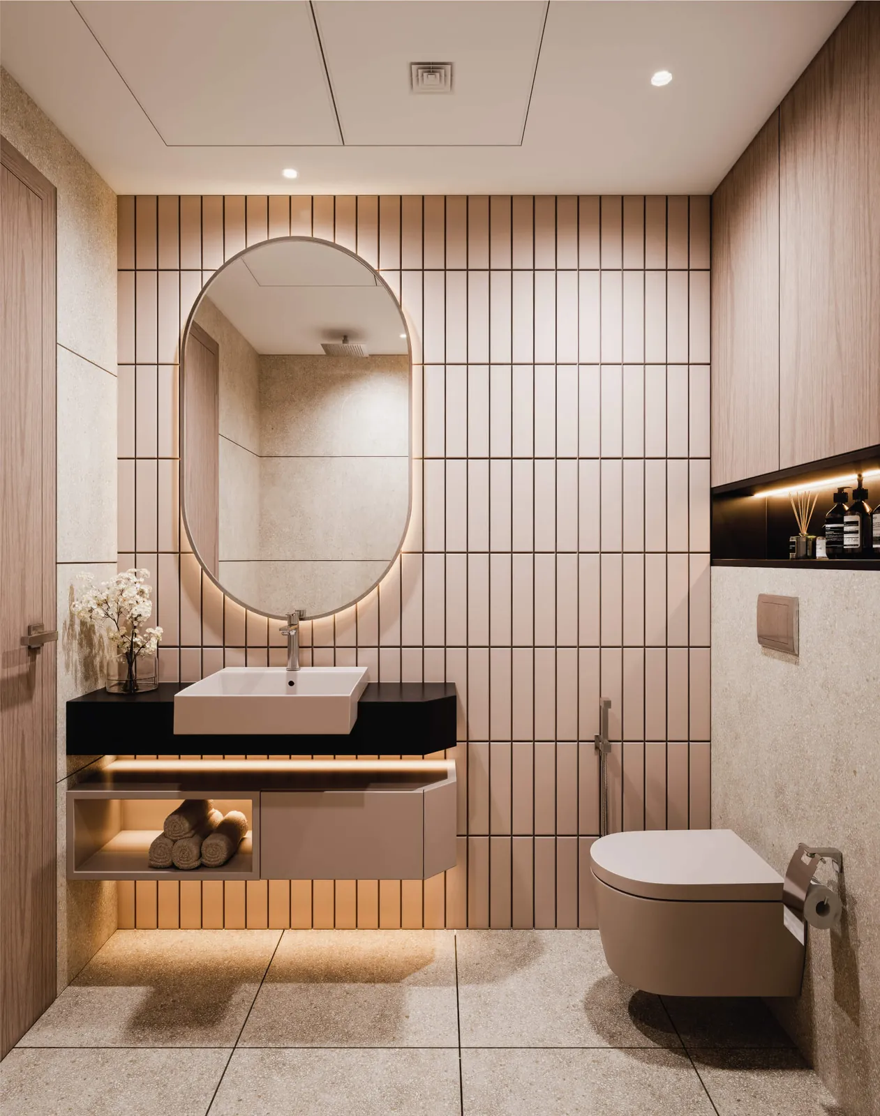 The residences feature high-quality finishes with bathrooms showcasing refined blends of stone, wood, and metal for a natural and elegant ambiance, while many units include a private balcony with a two-person jacuzzi. Kitchens are equipped with premium European-made materials and complemented by locally crafted joinery, adding character and finesse to the interiors. All homes are delivered unfurnished, giving residents the freedom to shape their living spaces according to their personal style and preferences.