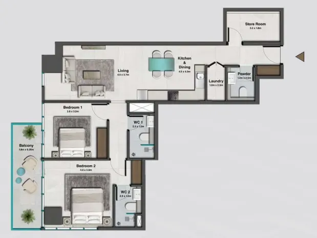 The bedrooms at Sky Hills Residence 2 are thoughtfully designed to provide both comfort and luxury, featuring generous layouts that offer serene views, ensuring a peaceful retreat from the city's hustle and bustle. Kitchens in each apartment come fully equipped with branded appliances, sleek countertops, and intuitive layouts, making them not just functional but a stylish focal point of the home.