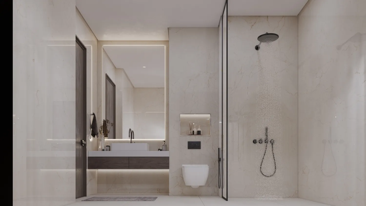 Apartments are crafted with high-end finishes, polished porcelain tiles. Home automation by HDL, air conditioning by Carrier.
