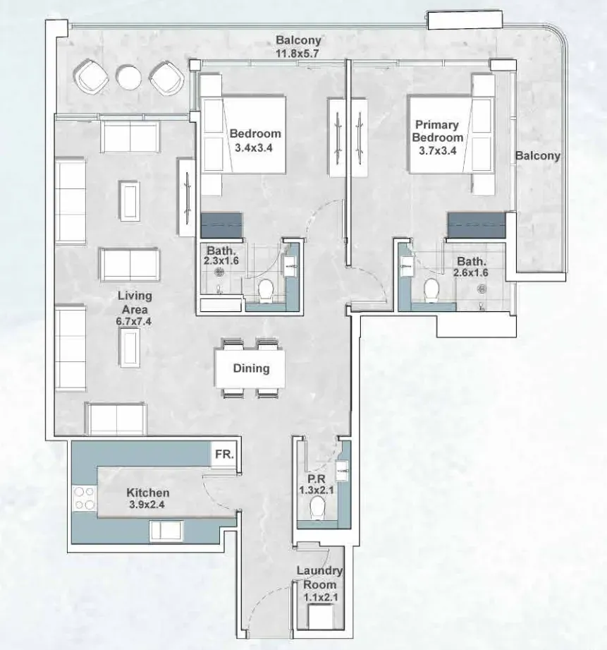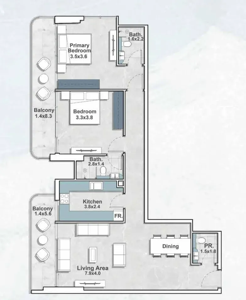 Germany sanitary-ware in all apartments like Grohe & Duravit, fully Equipped Kitchen with Bosch Appliances, custom-Designed Kitchen Cabinets & Vanities, Italian Counter tops