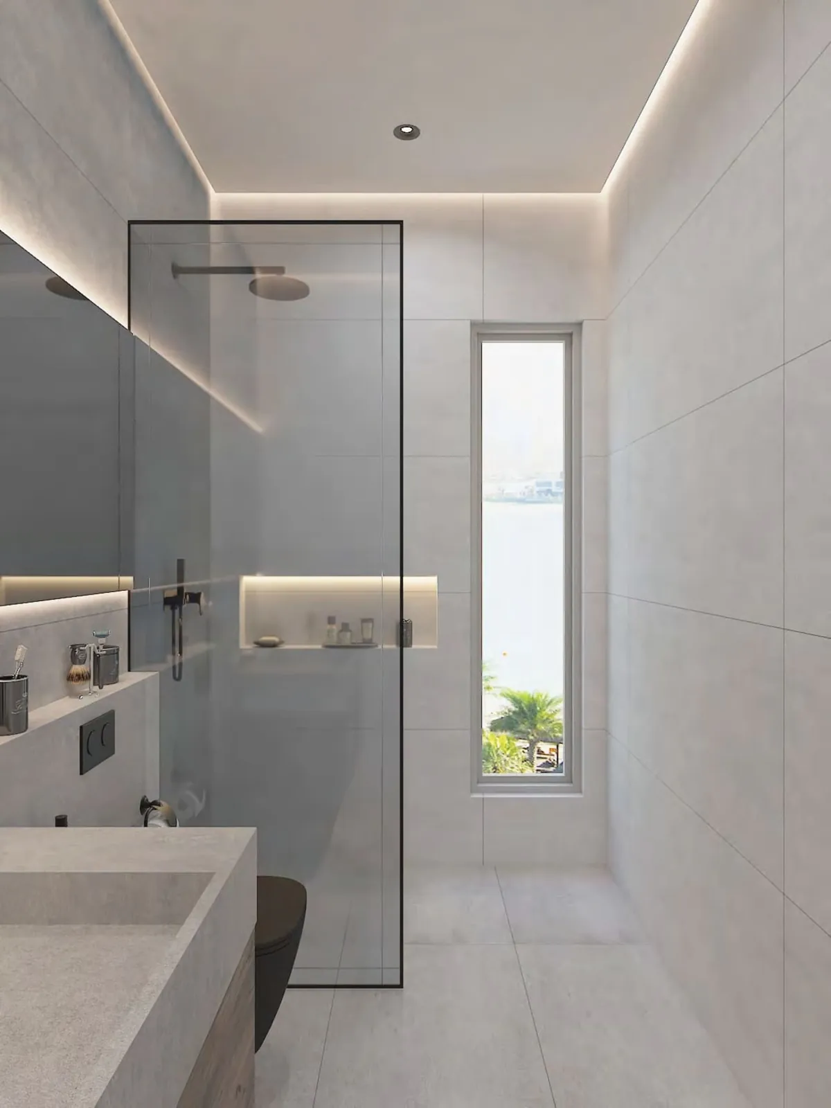 Modern finishing with high-quality materials with porcelain flooring and smart home system