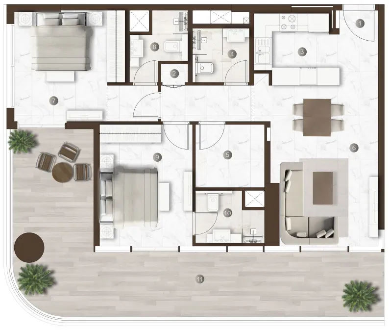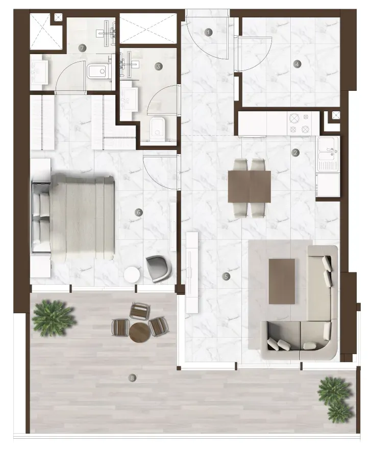 The array of amenities at Onda by Kasco ensures that residents enjoy an unparalleled lifestyle filled with comfort, wellness, and social opportunities. The project boasts an impressive infinity pool, indoor and outdoor swimming pools, a gym, and a luxurious spa for ultimate relaxation. There is a wellness café and co-working space, making it easy to blend work and leisure. Residents can also enjoy unique features like a yoga area, cold plunge room, and steam rooms, enhancing their wellness journey. Outdoor seating areas, a running track, and a dedicated kids’ pool make it a space where everyone can thrive, whether seeking active pursuits or serene moments.