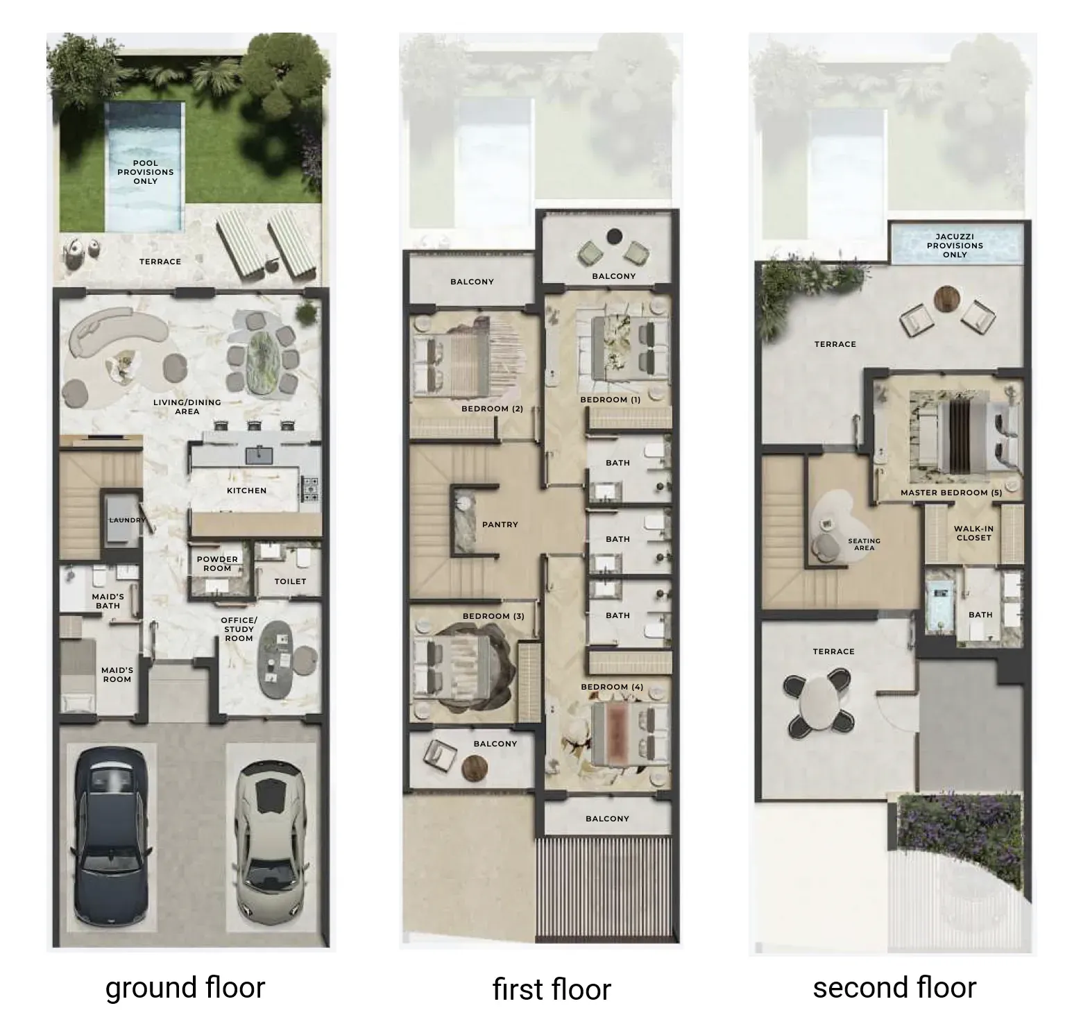 The homes in Kensington Gardens are a blend of refined British elegance and modern luxury, with 3, 4, and 5-bedroom townhouses, as well as opulent 6 and 7-bedroom standalone villas. Designed with an emphasis on sustainable, green living, these residences feature branded interiors and exquisite craftsmanship, offering a unique blend of sophistication and exclusivity. Set within lush surroundings, the development is an ideal retreat for families seeking both luxury and well-being in one of Dubai’s most vibrant new communities.