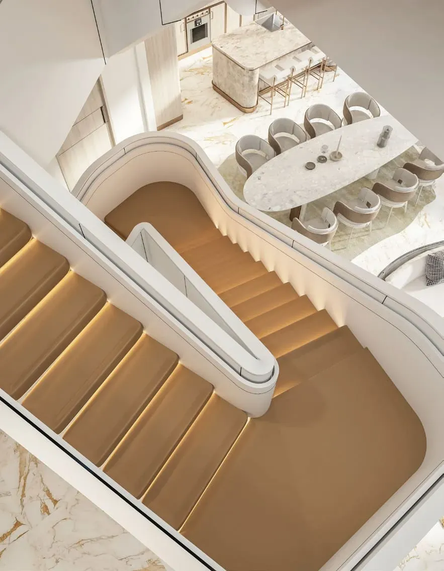Interiors are designed with soft natural light, refined materials, and quiet luxury that can be felt in every space. Kitchens feature elegant finishes, smooth surfaces, and contemporary layouts that blend function with beauty. Warm timber, gentle stone textures, brushed metal details, and large glass openings come together to create interiors that are modern, soothing, and crafted with exceptional attention to detail.
