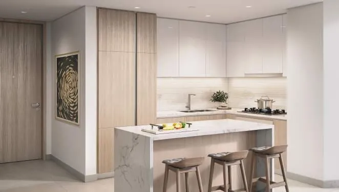 Every residence offers open and airy floor plans that feature 3m ceiling heights, with floor to ceiling windows. Expansive and engaging views set the backdrop to open living and dining areas.